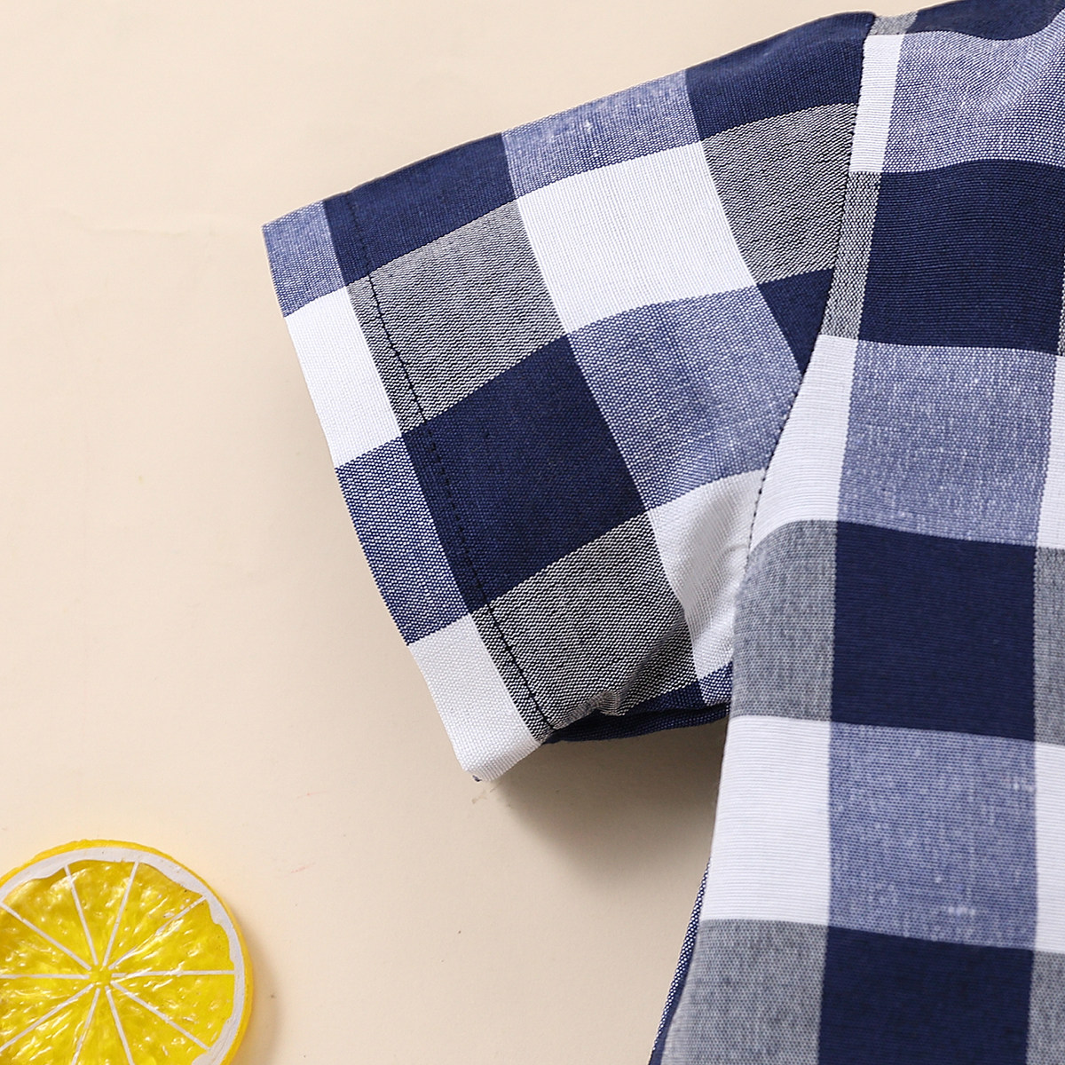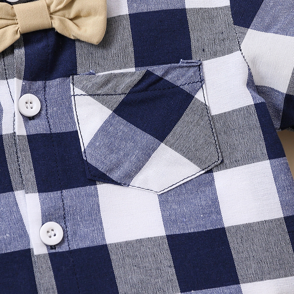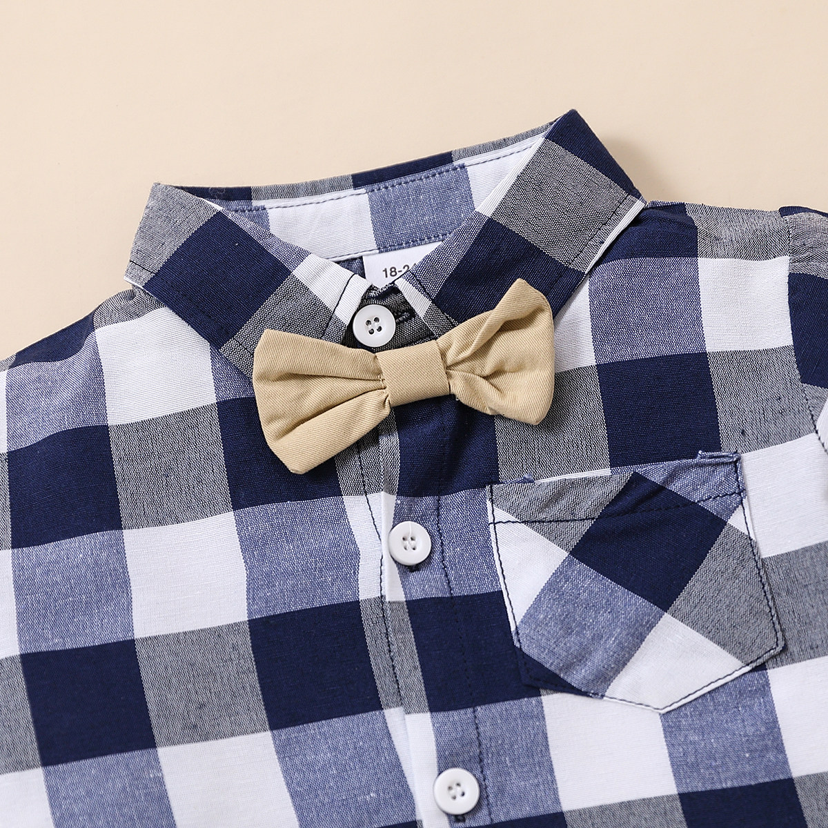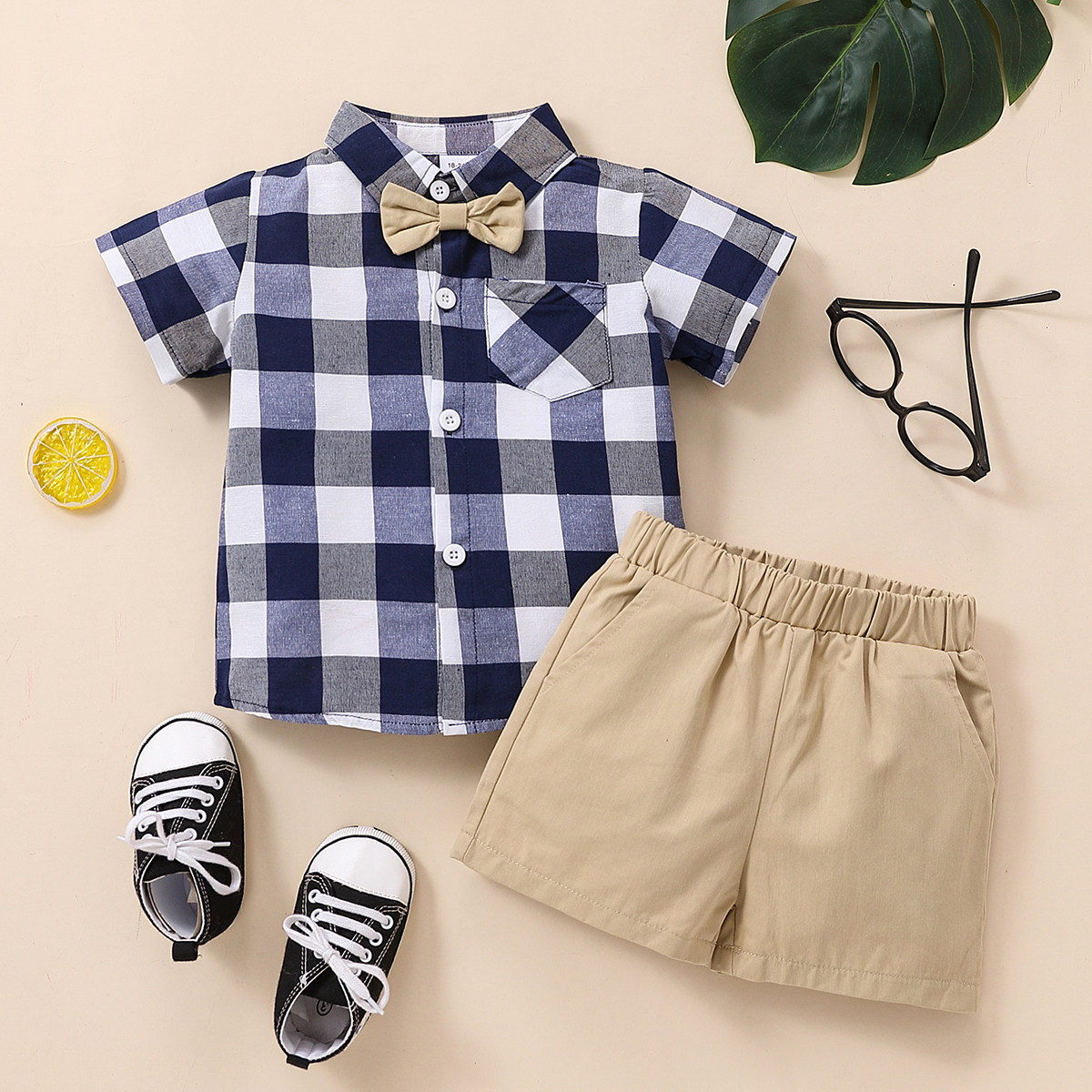 Toddler Boy Shirt Collar Plaid Color-block Top & Shorts Wholesale