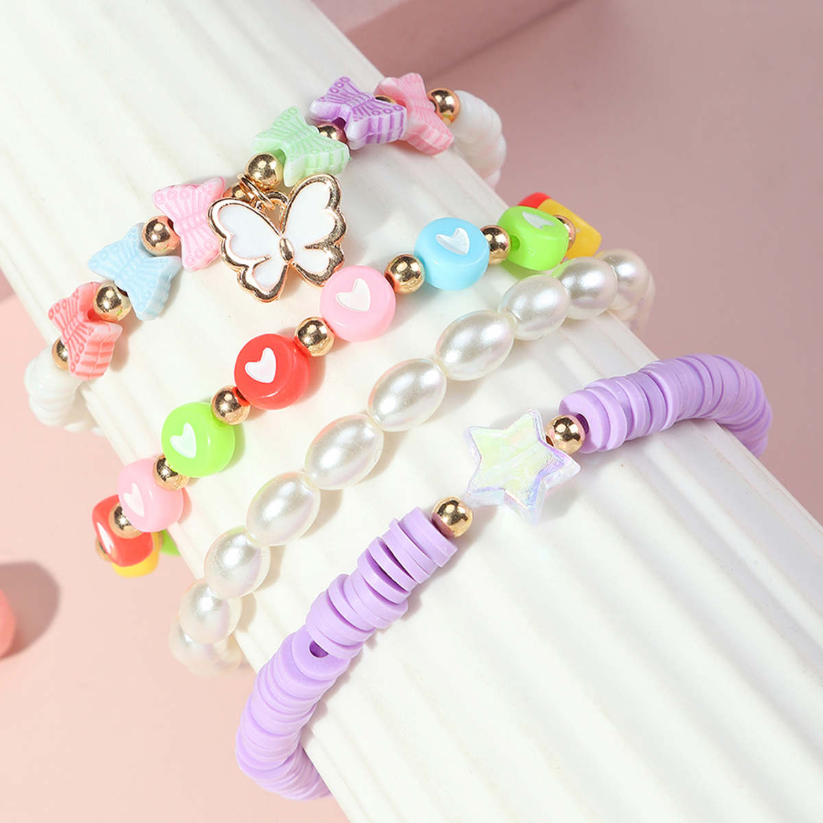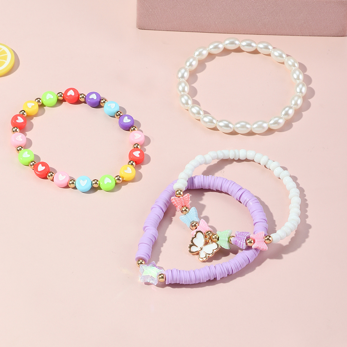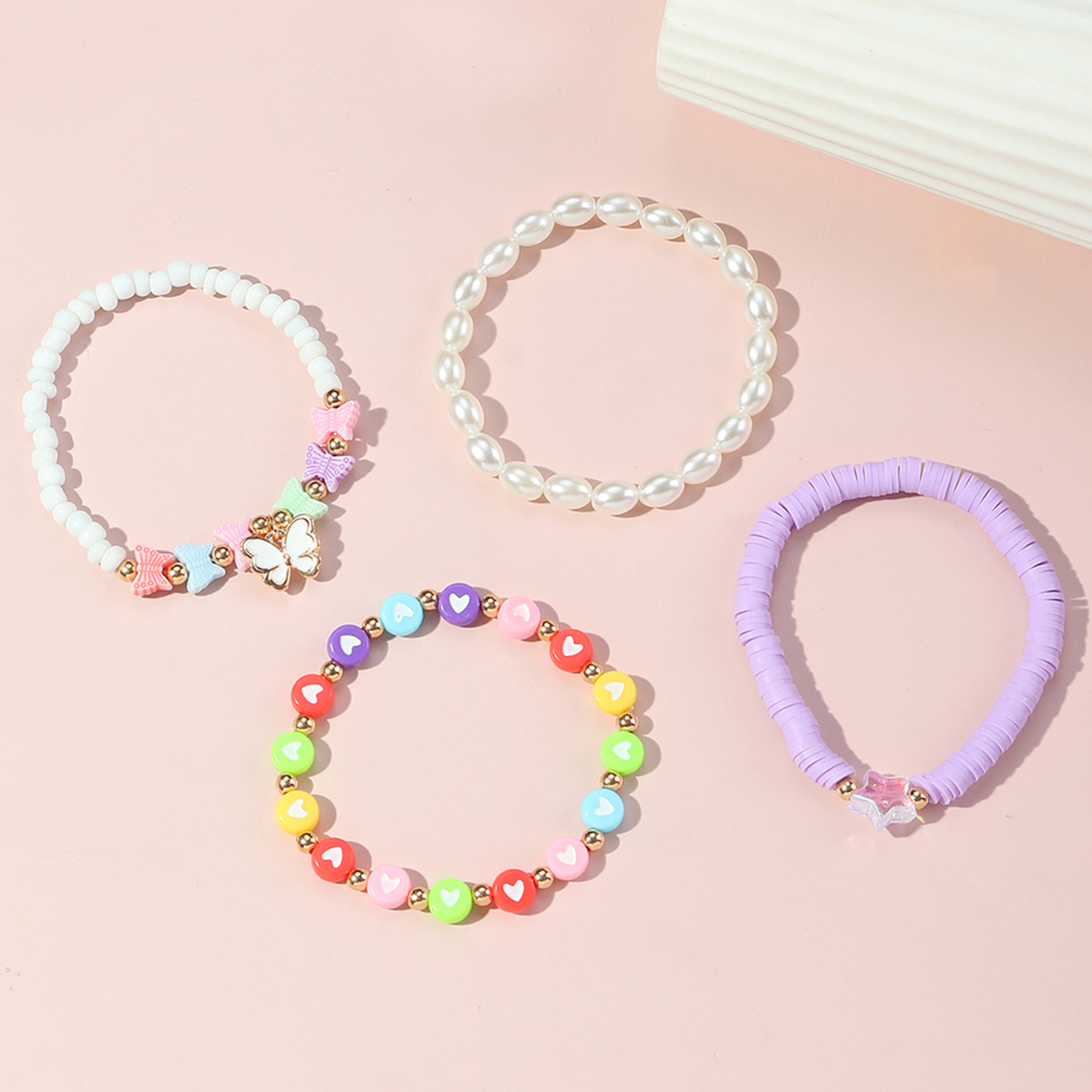Toddler Girl 4-Pieces Colored Pearls Bracelet Wholesale
