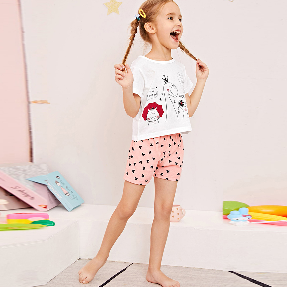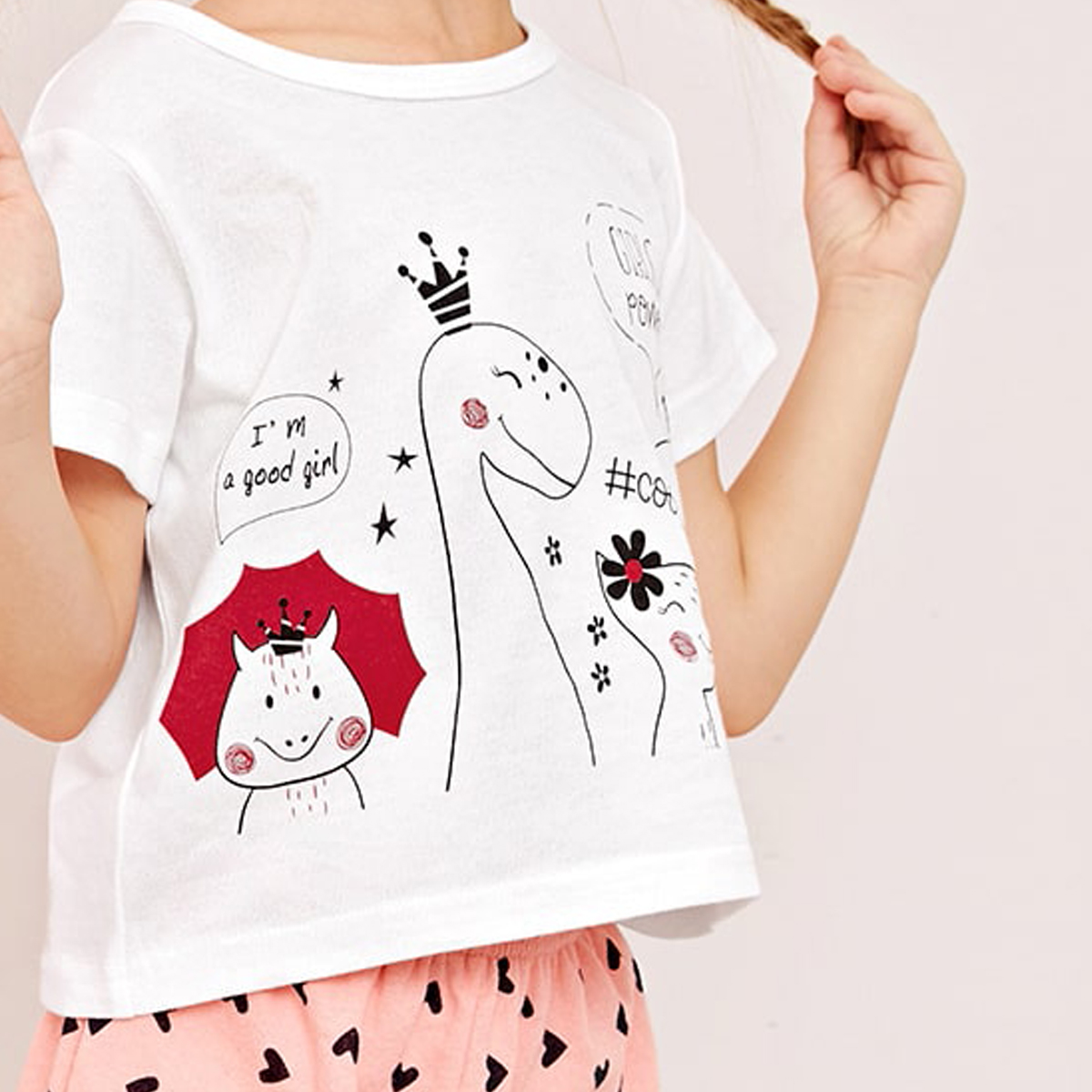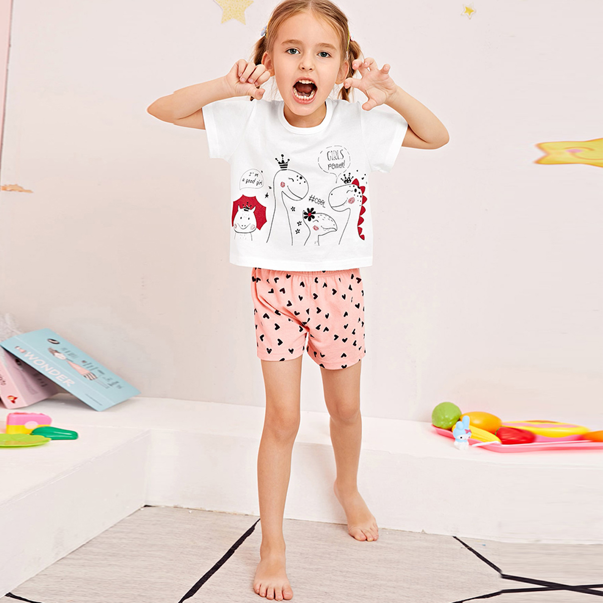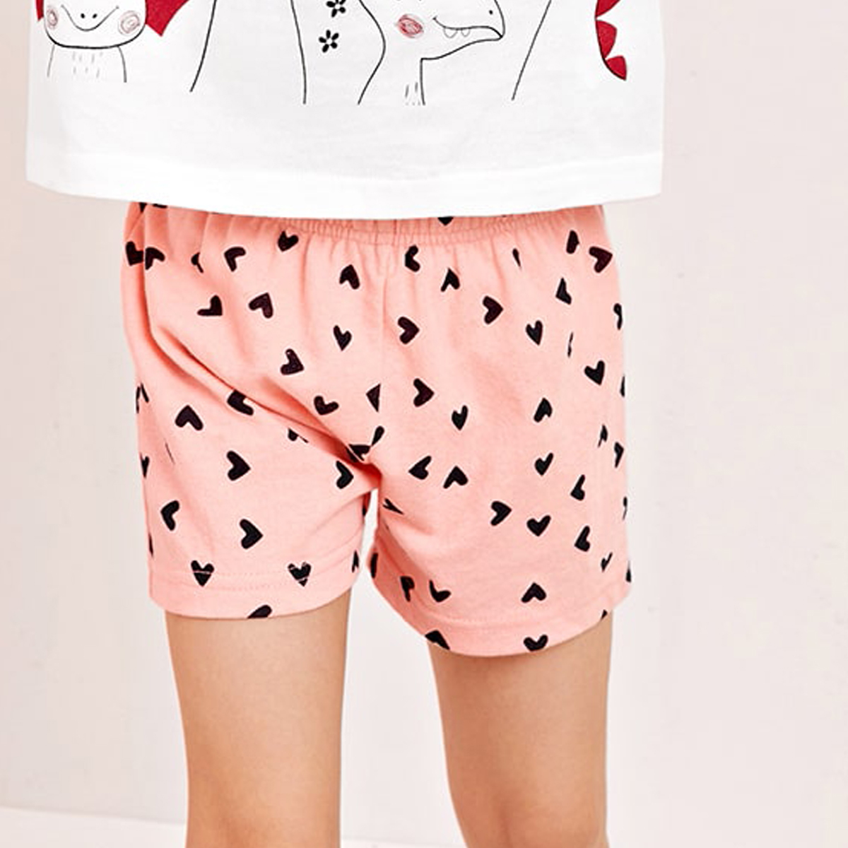 Toddler Girl Heart-shaped Dinosaur Pajamas Top & Shorts Wholesale