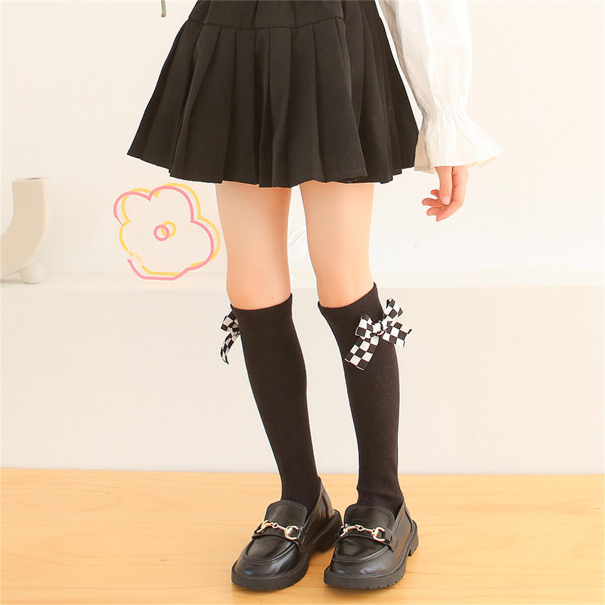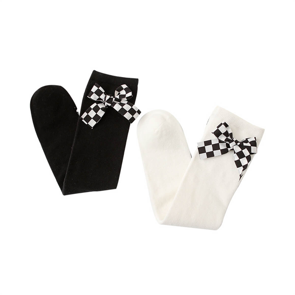 Toddler Girl Solid Color Checkerboard Bow Children Socks Wholesale