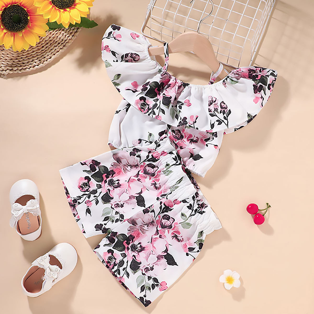 Toddler Girl Sweet Comfortable Ruffle T-shirt & Shorts Wholesale