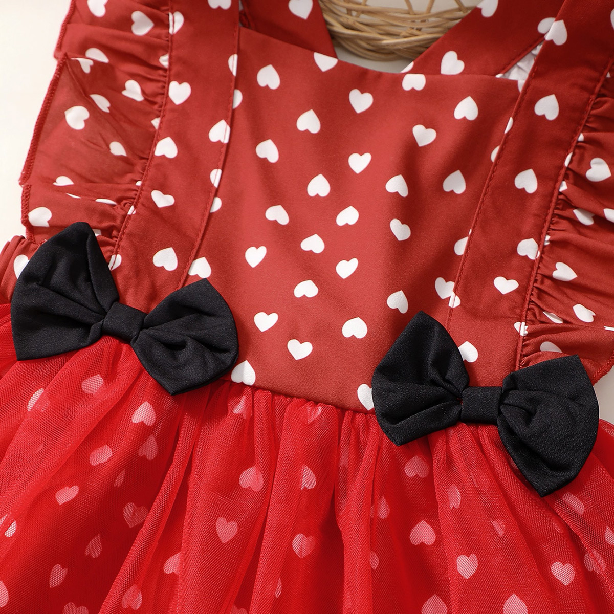 Toddler Girls Straps Heart-shaped Mesh Hem Dress Wholesale