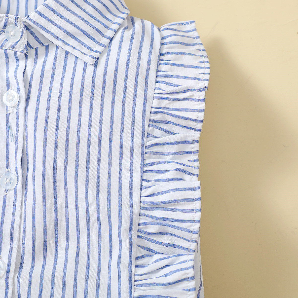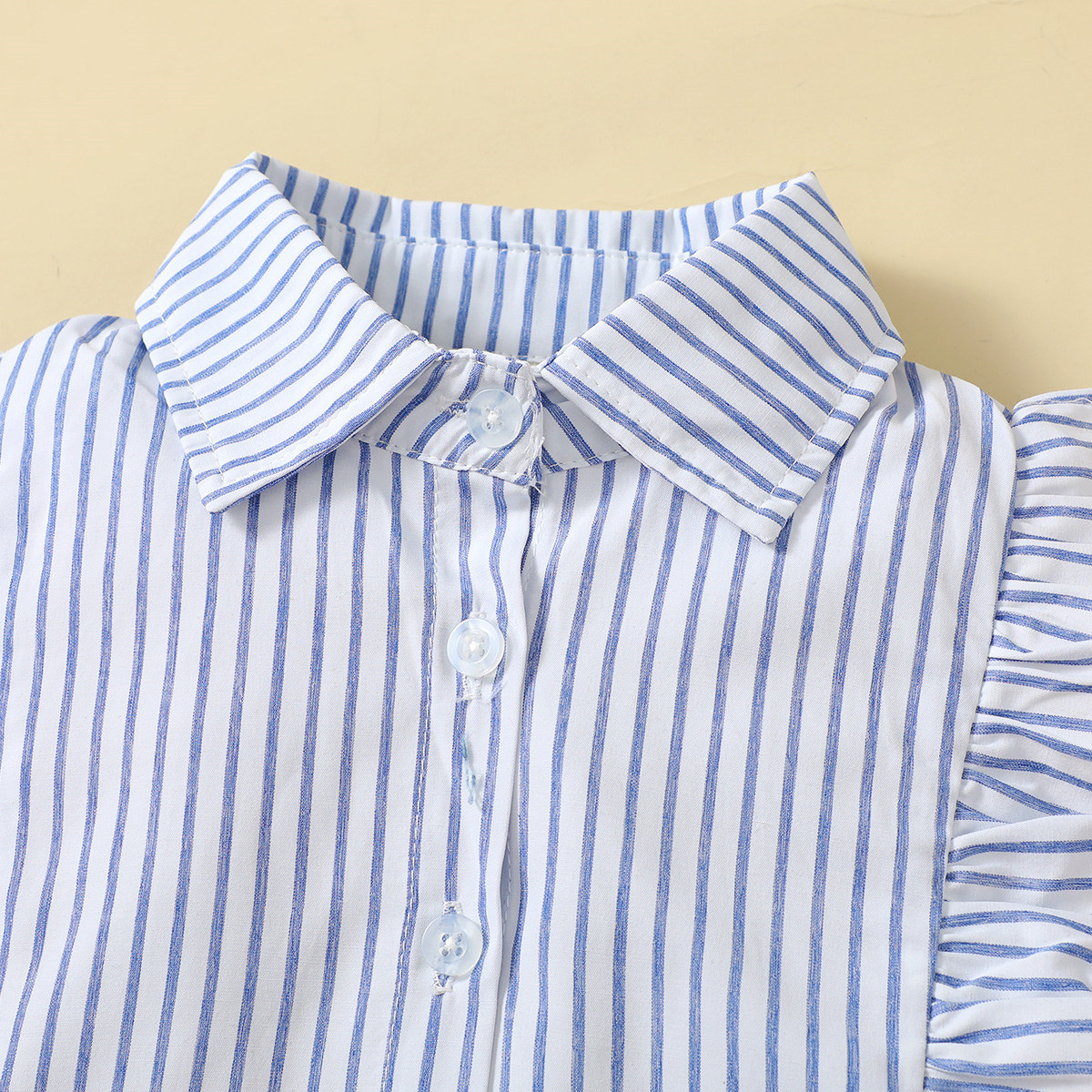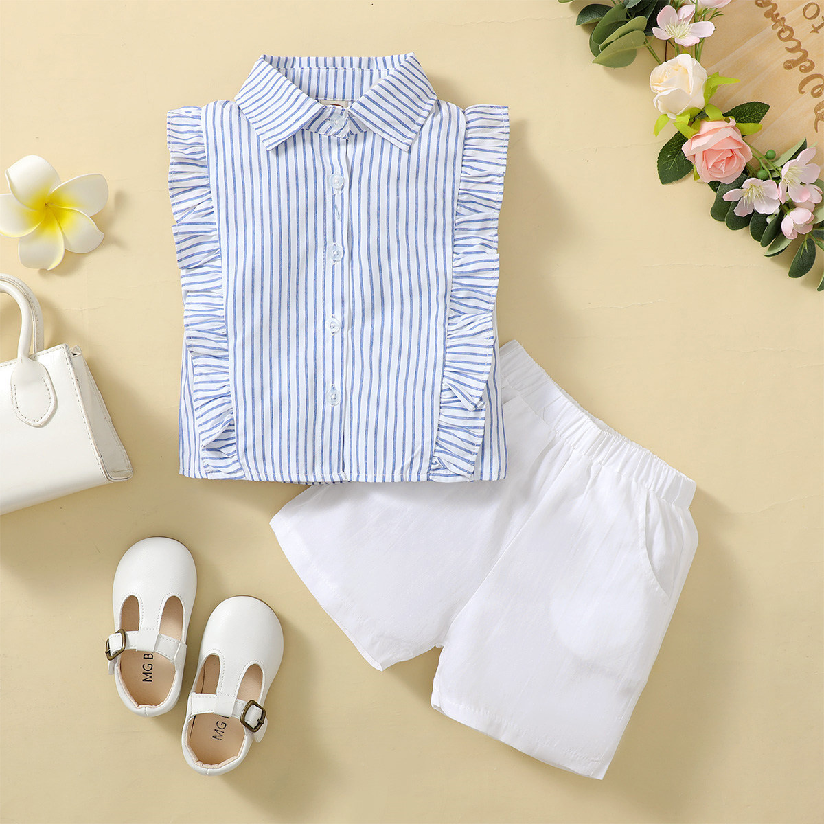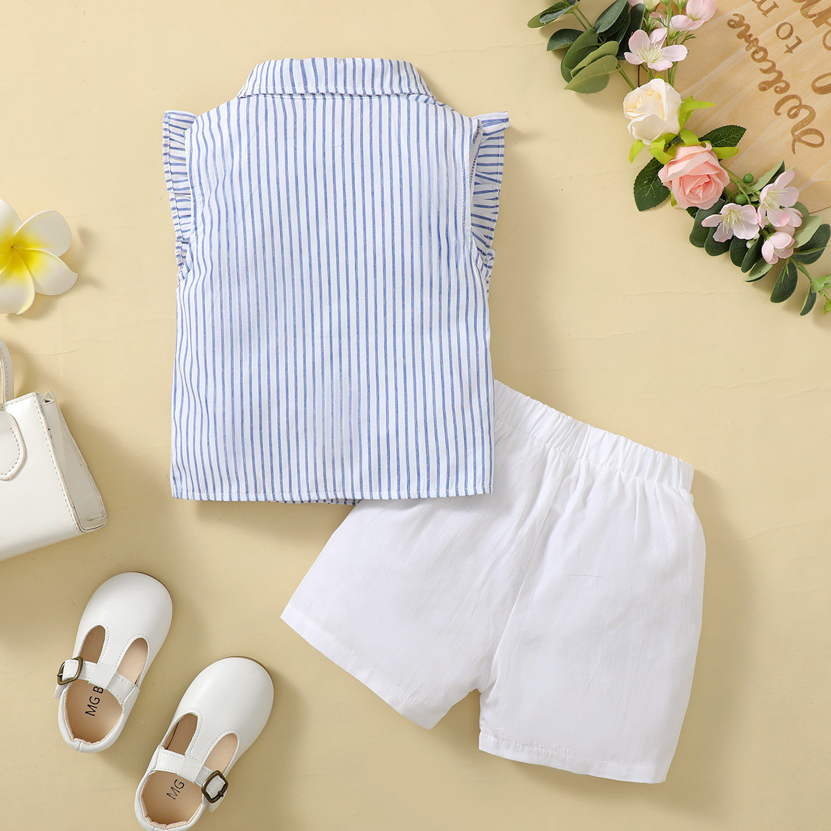 Toddler Girls Stripes Shirt Collar Cute Top & Shorts Wholesale