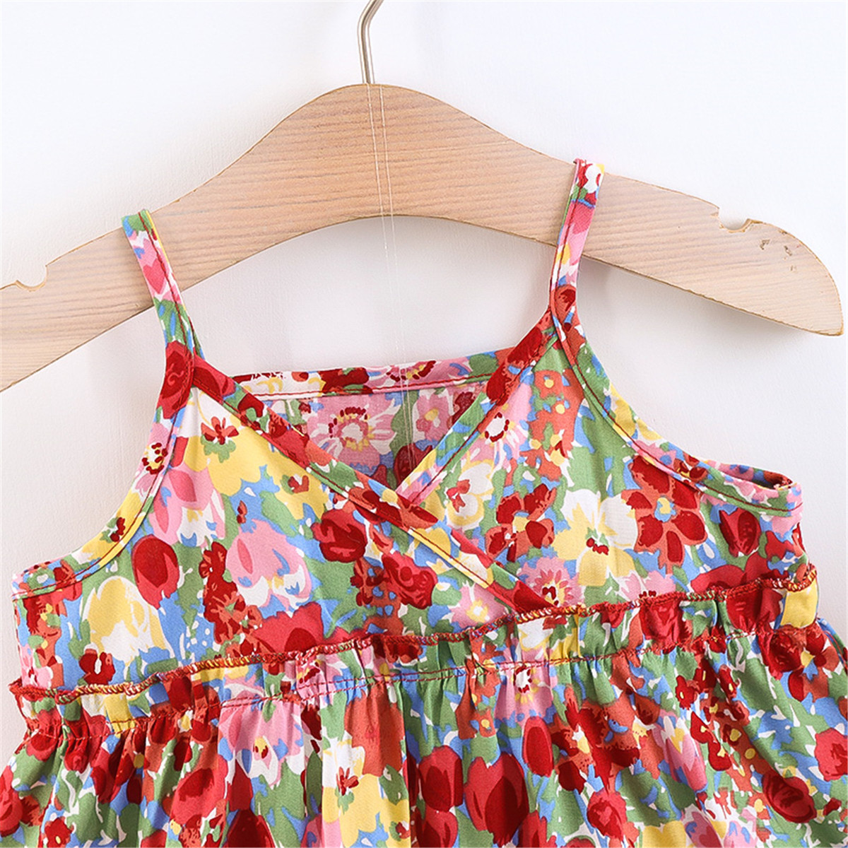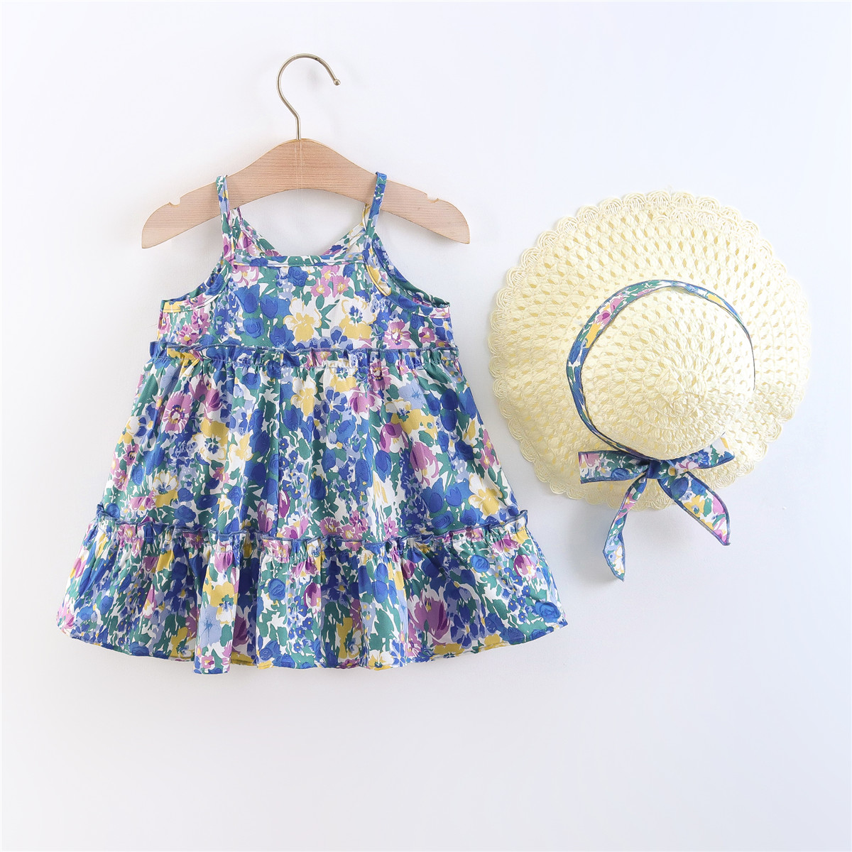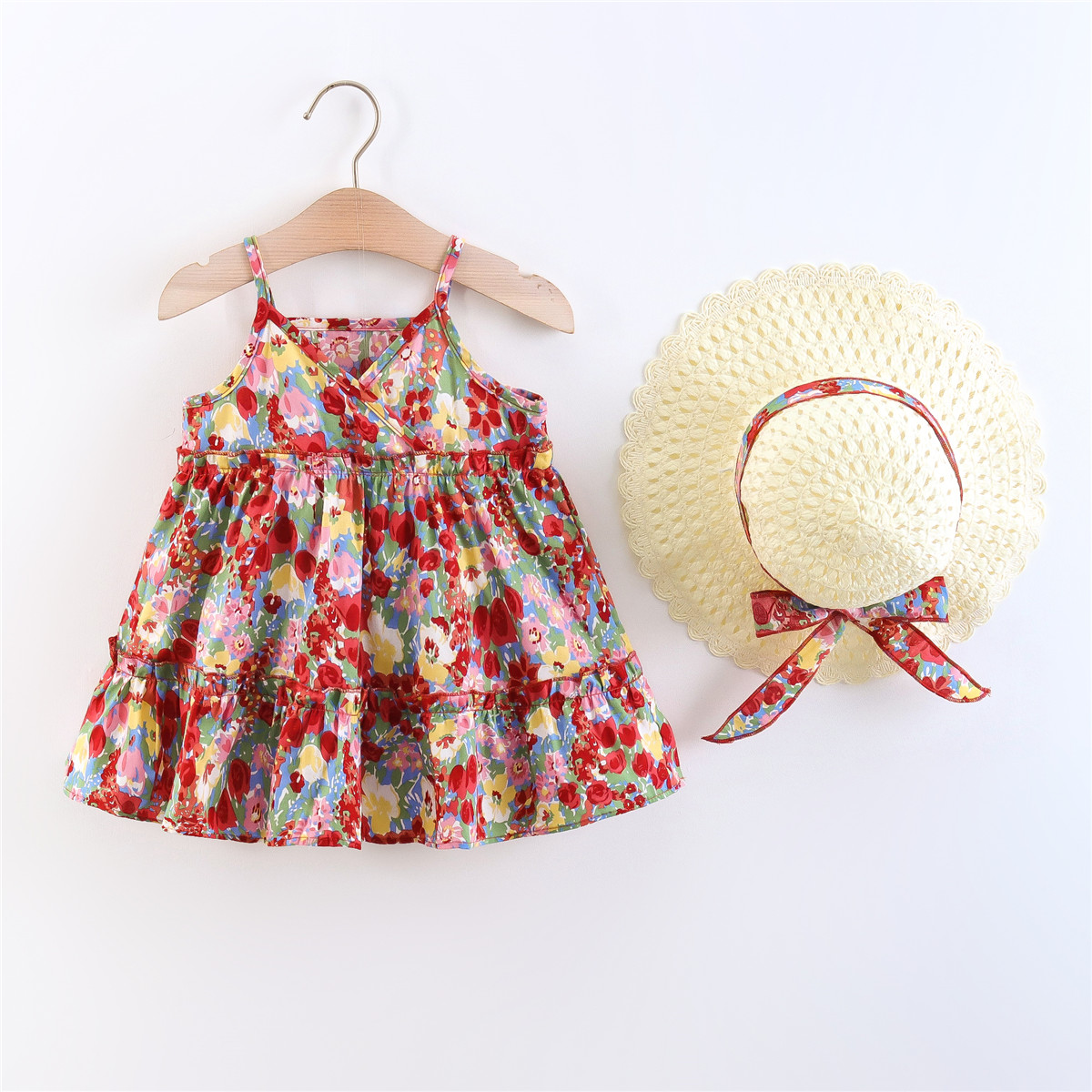 Toddler Girls V-neck Floral Color-block Dress & Hat Wholesale