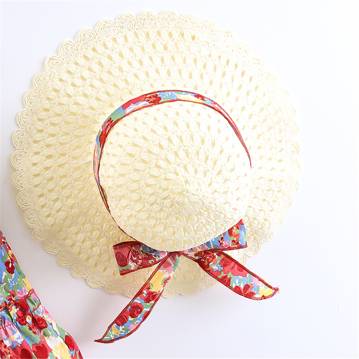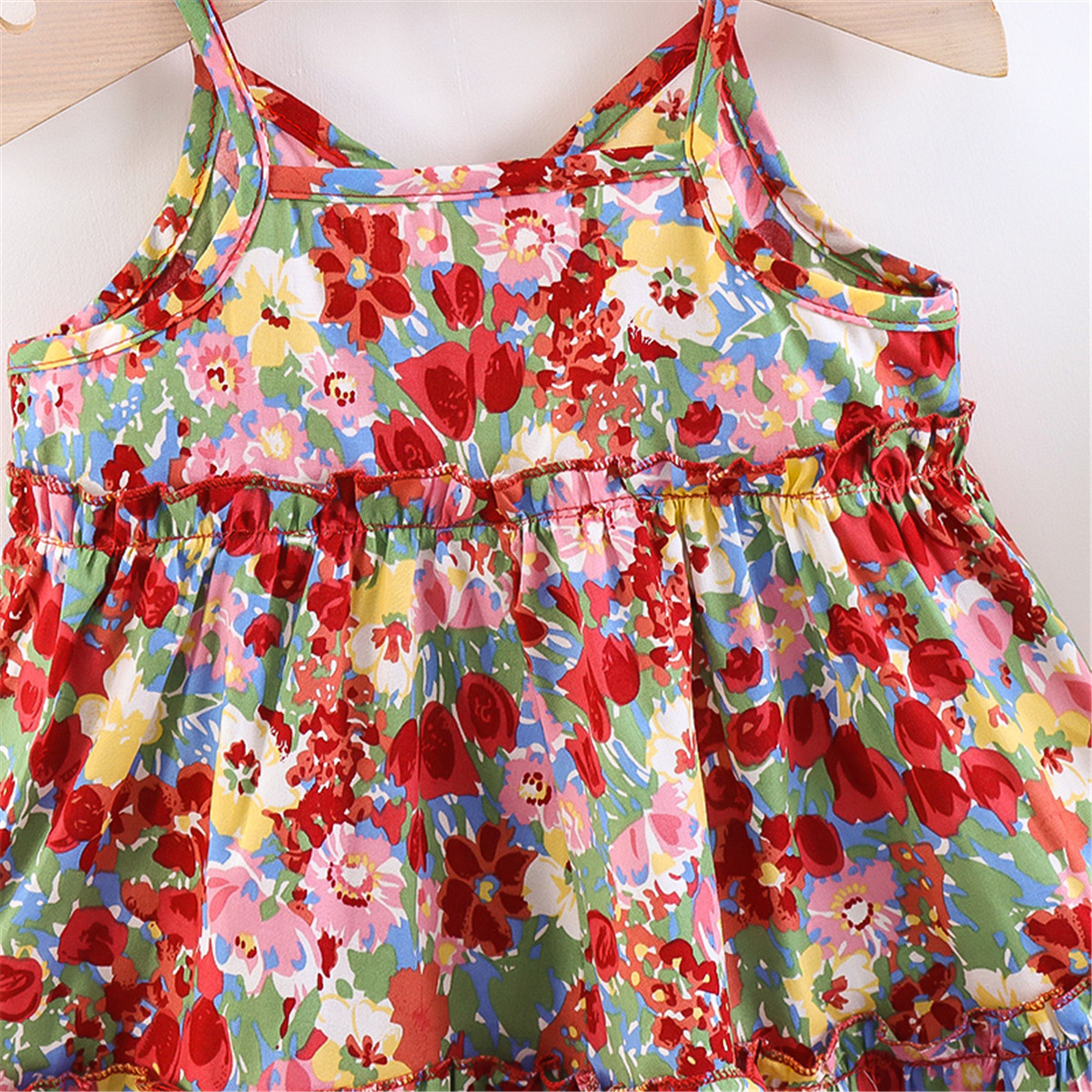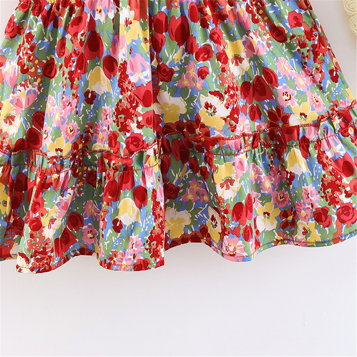 Toddler Girls V-neck Floral Color-block Dress & Hat Wholesale