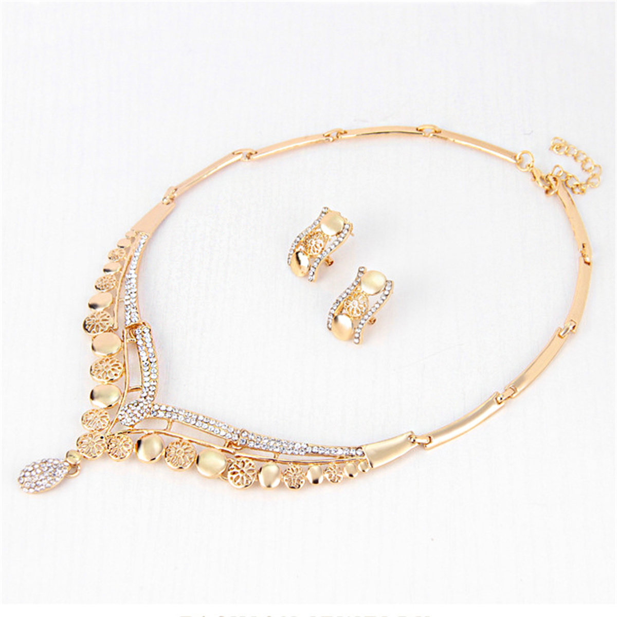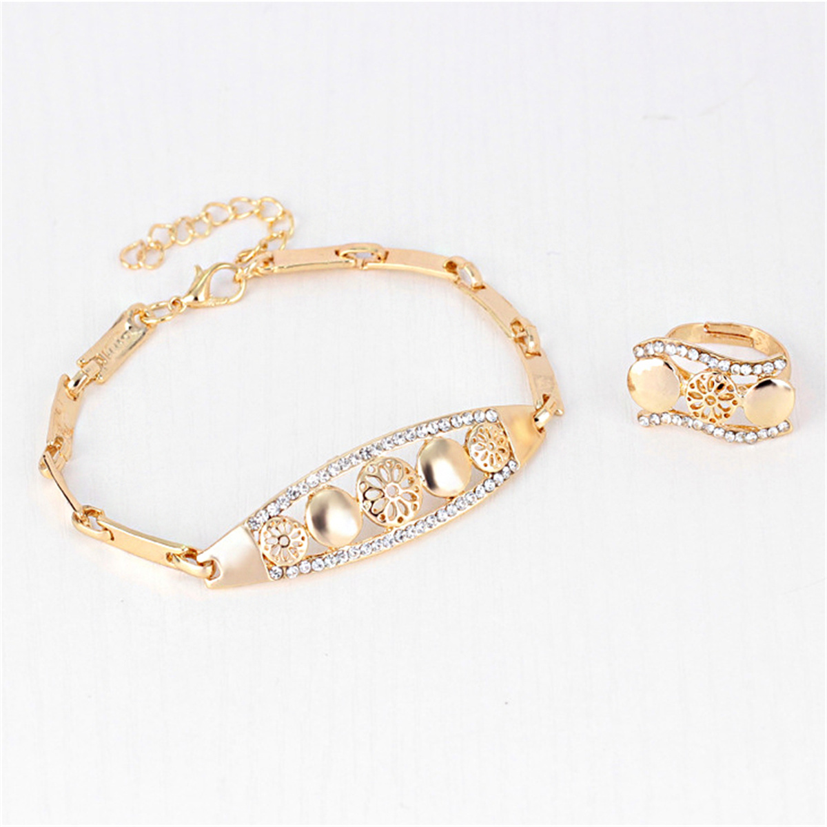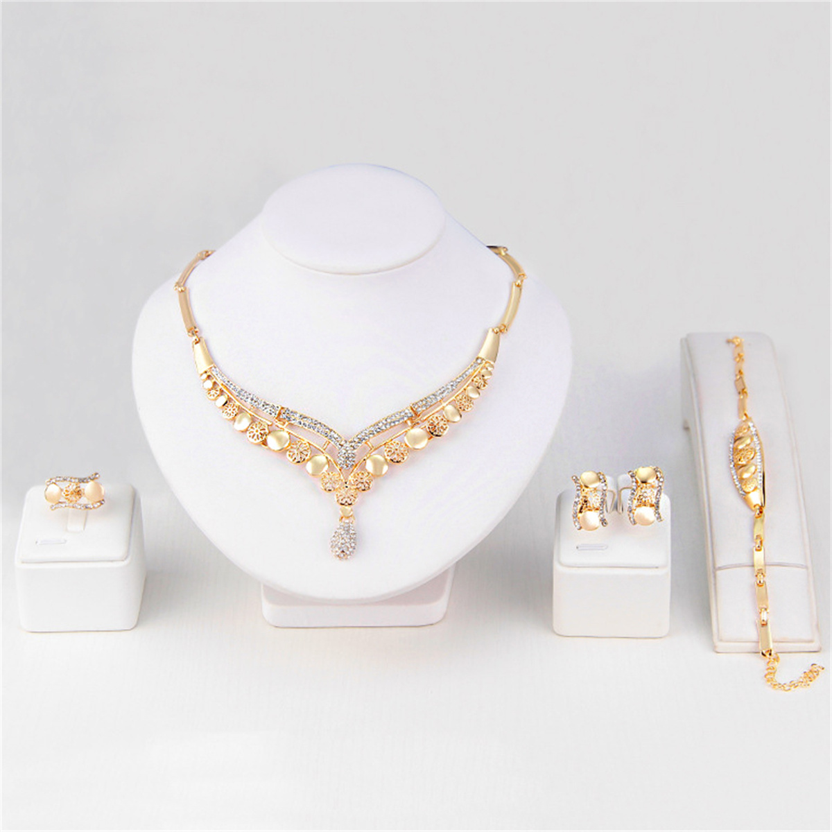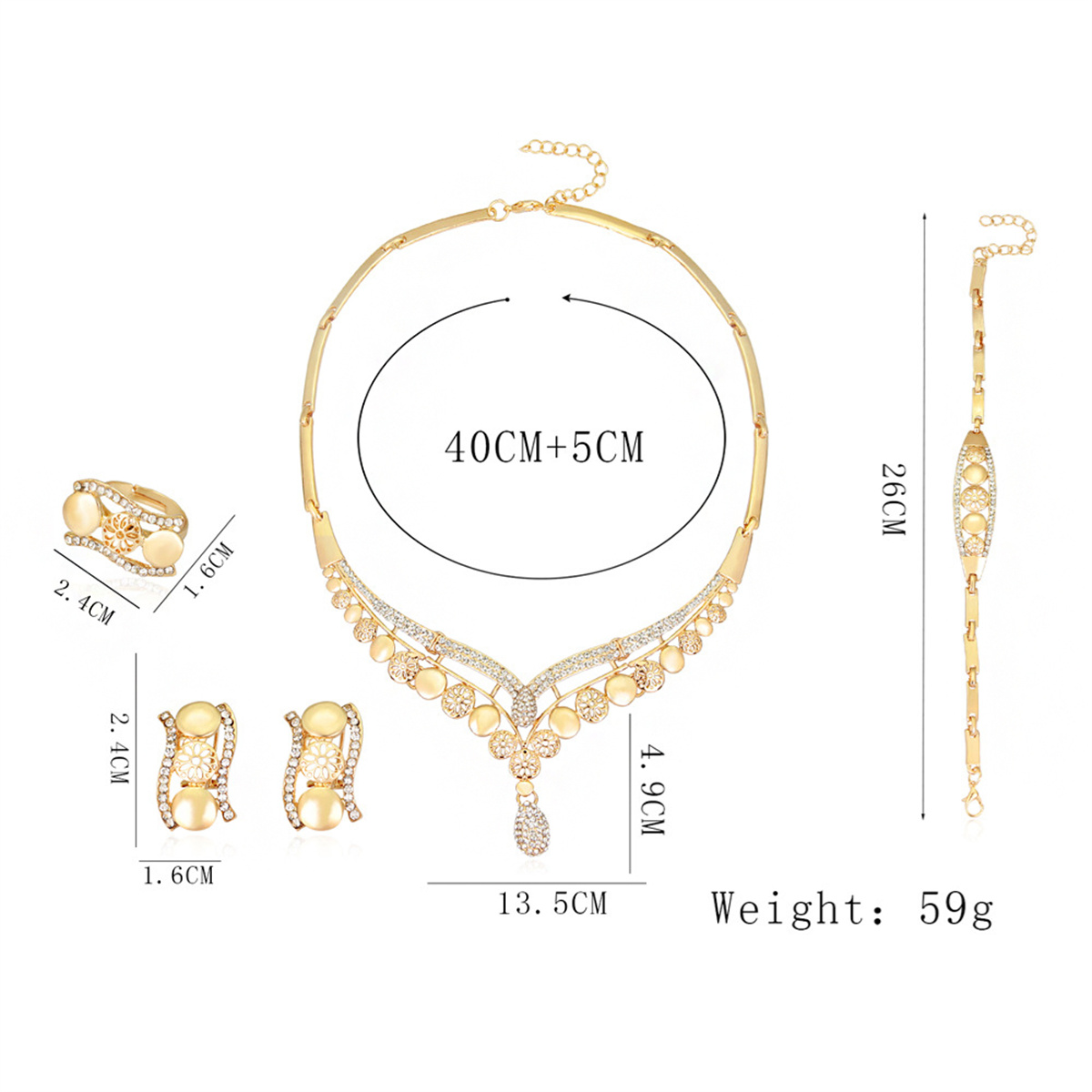 Women 4-Piece Exaggerated Metal Rhinestones Jewelry Set Wholesale