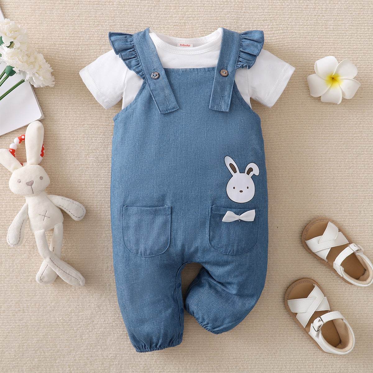 hibobi Baby Girl Cute Bunny Print Denim Vest Two-Piece Wholesale