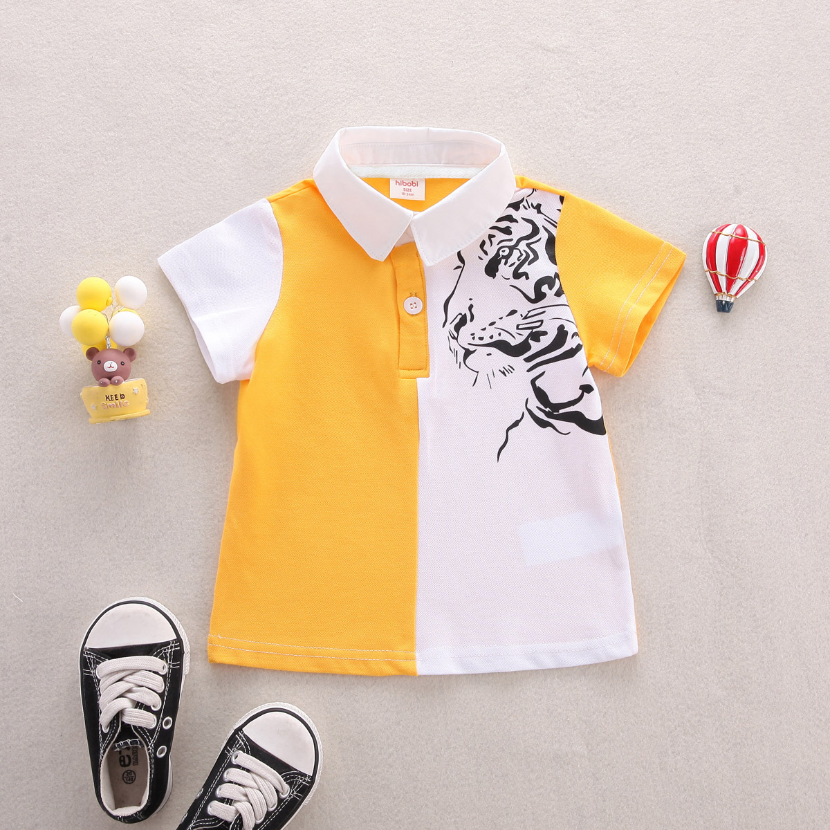Toddler Boy Tiger Print Yellow & White Patchwork Polo T-shirt Wholesale
