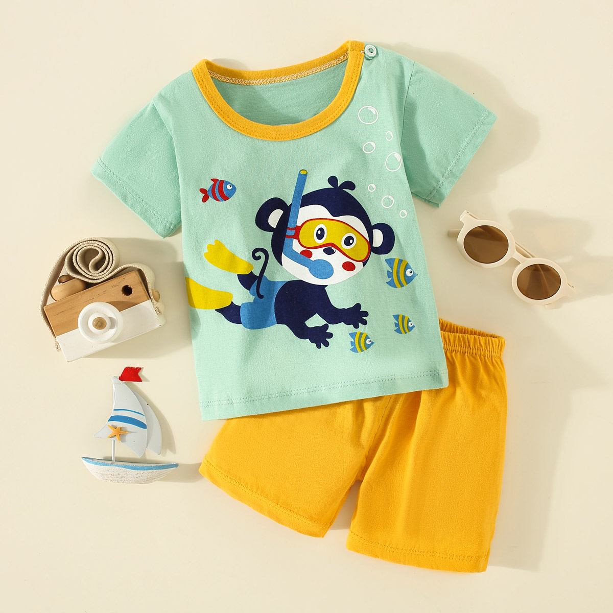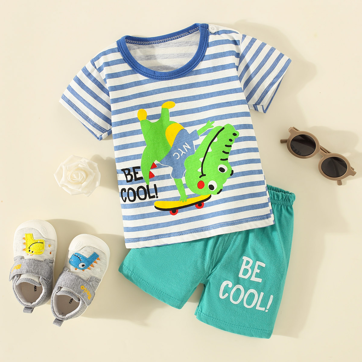 Toddler Boys Cute Stripes Dinosaur Monkey Pajamas Sets Top & Shorts Wholesale