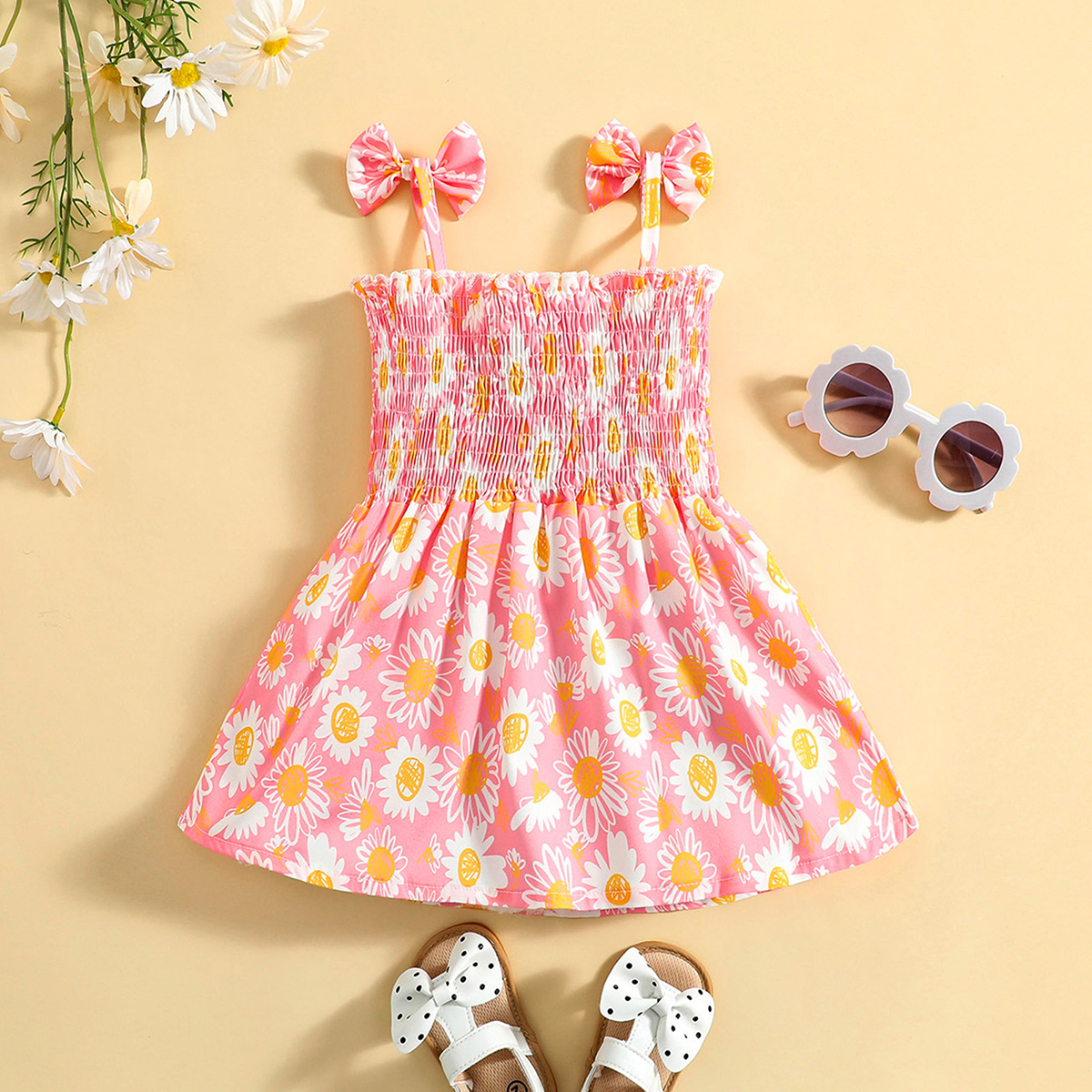Baby Girl Sweet Floral Print Bowknot Sling Dress Wholesale