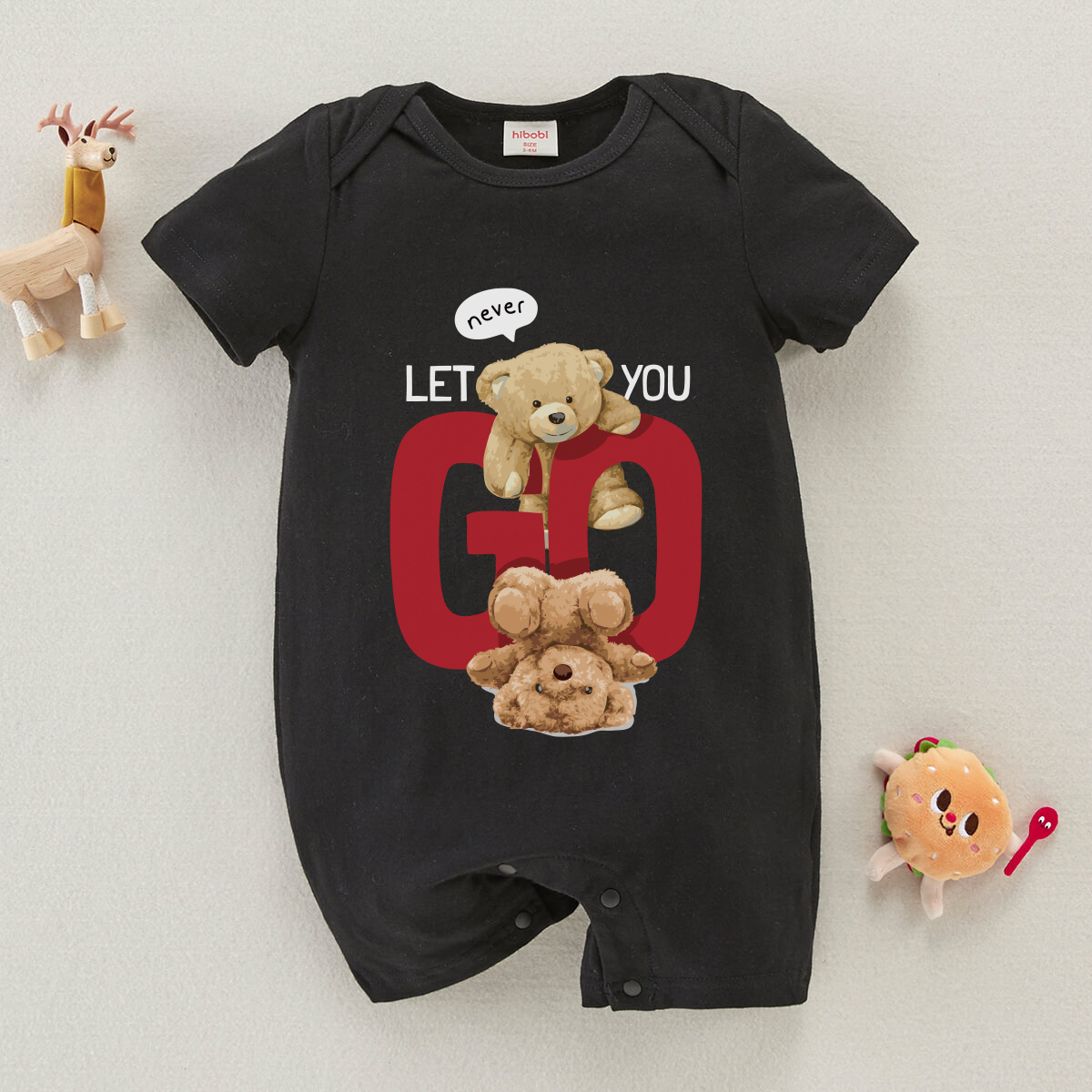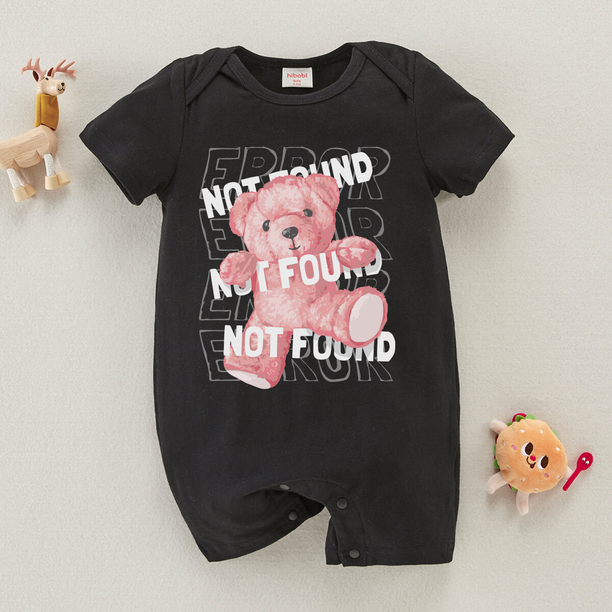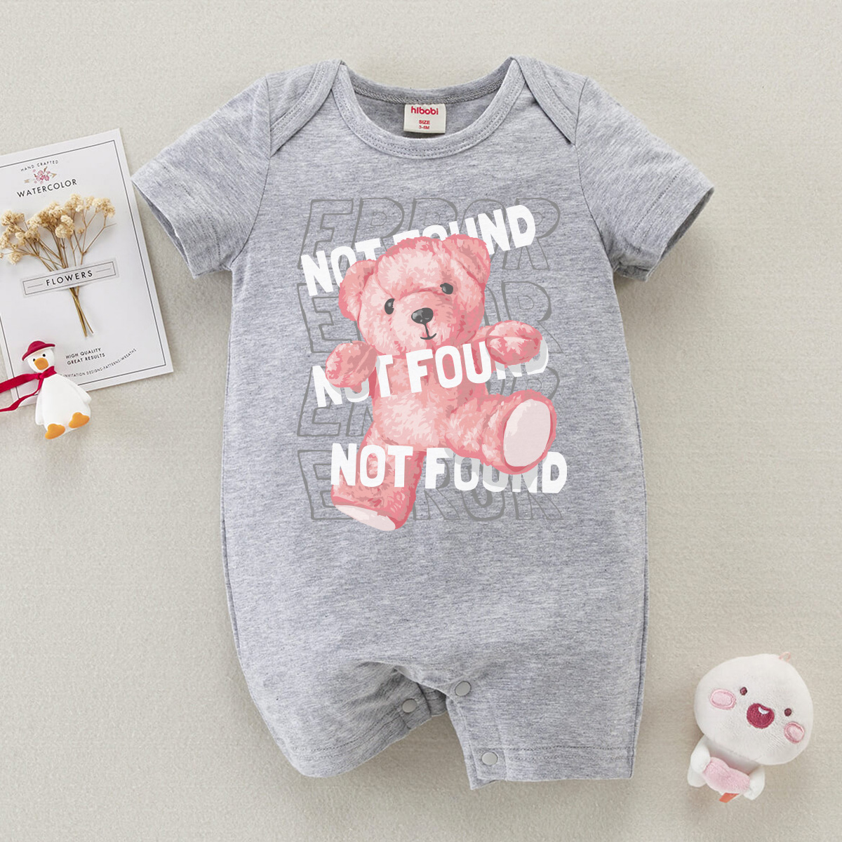hibobi Baby Alphabet Cute Bear Print Short Sleeve Bodysuit Wholesale