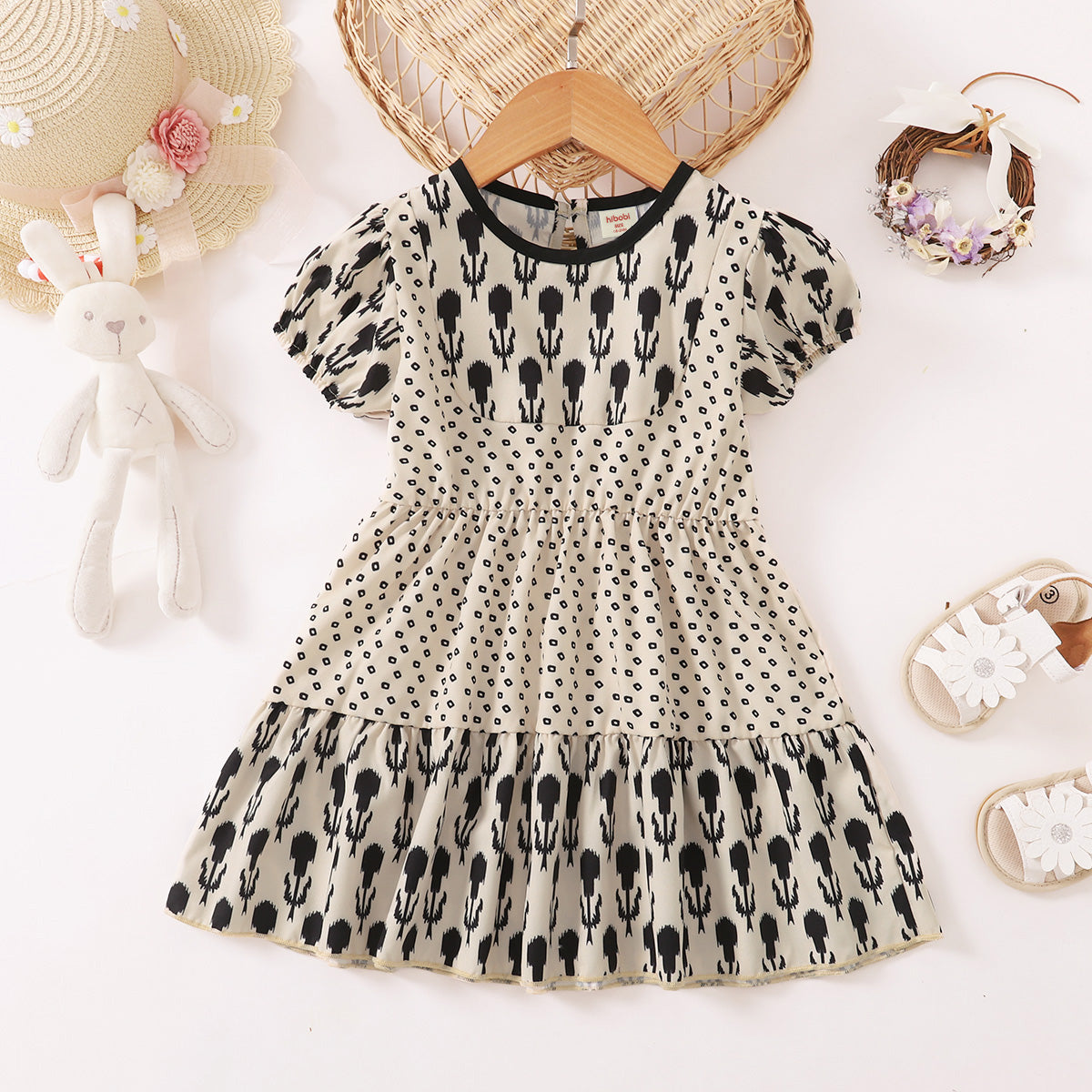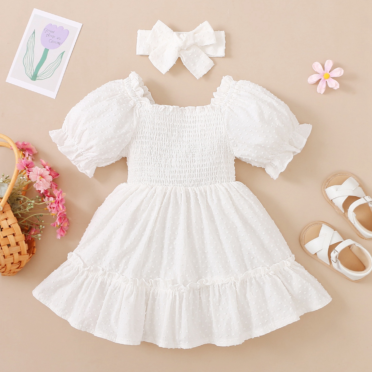 Toddler Girl Sweet Smocking Puff Sleeve Top Dress Wholesale