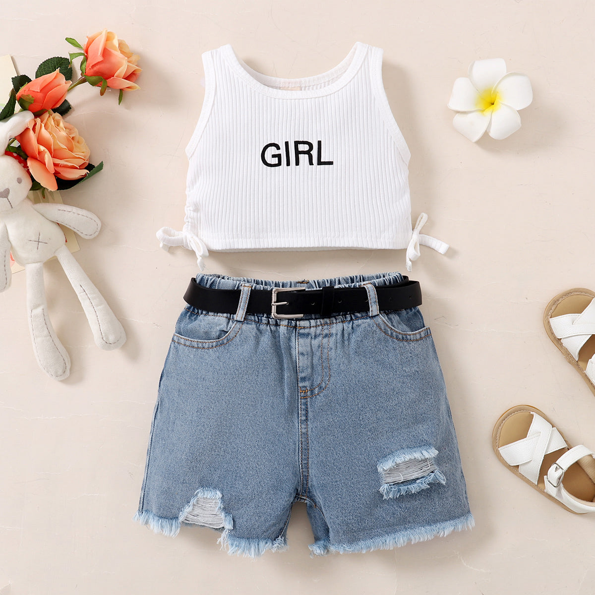 Toddler Girls Cotton Letter Solid Ribbed Top & Shorts Wholesale