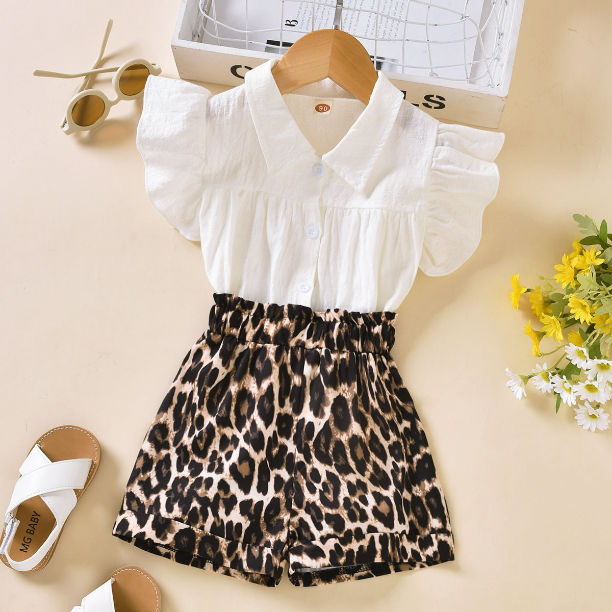 Toddler Girls Collar Leopard Solid Top & Shorts Wholesale