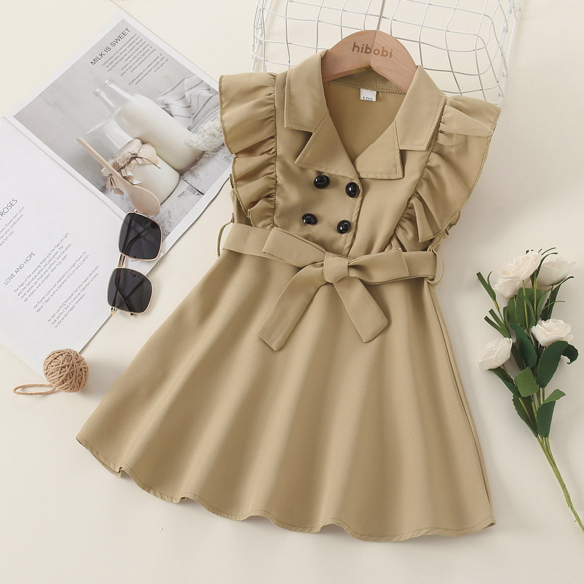 Toddler Girl Eleguard Plain Ruffle Solid Color Dress Wholesale