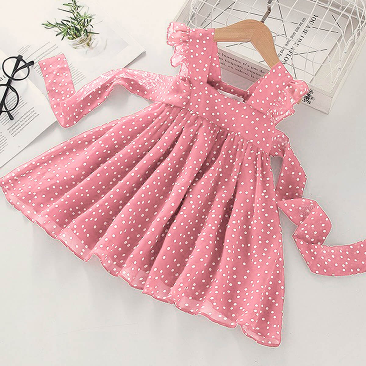 Ruffle Bow Decor Polka Dot Pleated Dress for Toddler Girl Wholesale