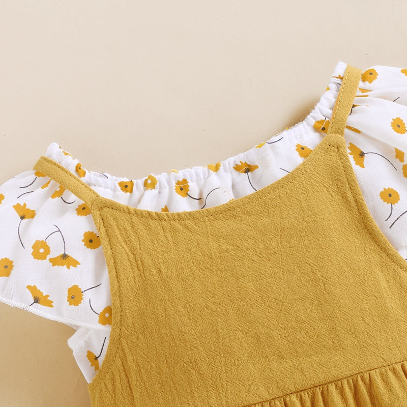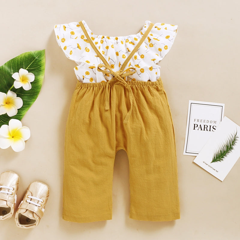 2-piece Floral Printed Blouse & Dungarees for Toddler Girl Wholesale