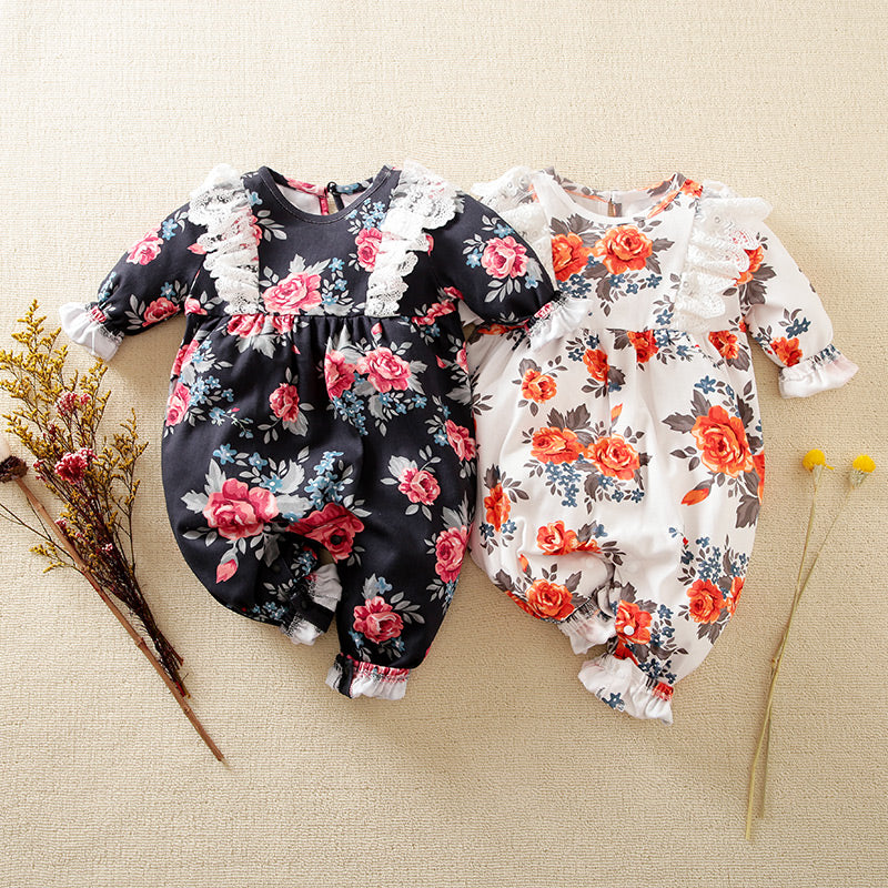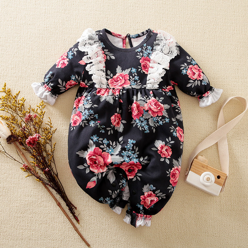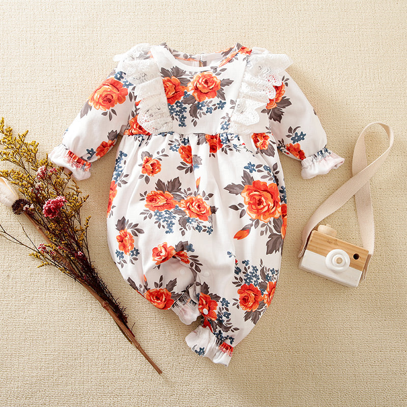 hibobi Baby Girl Vintage Flowers Print Jumpsuit Wholesale
