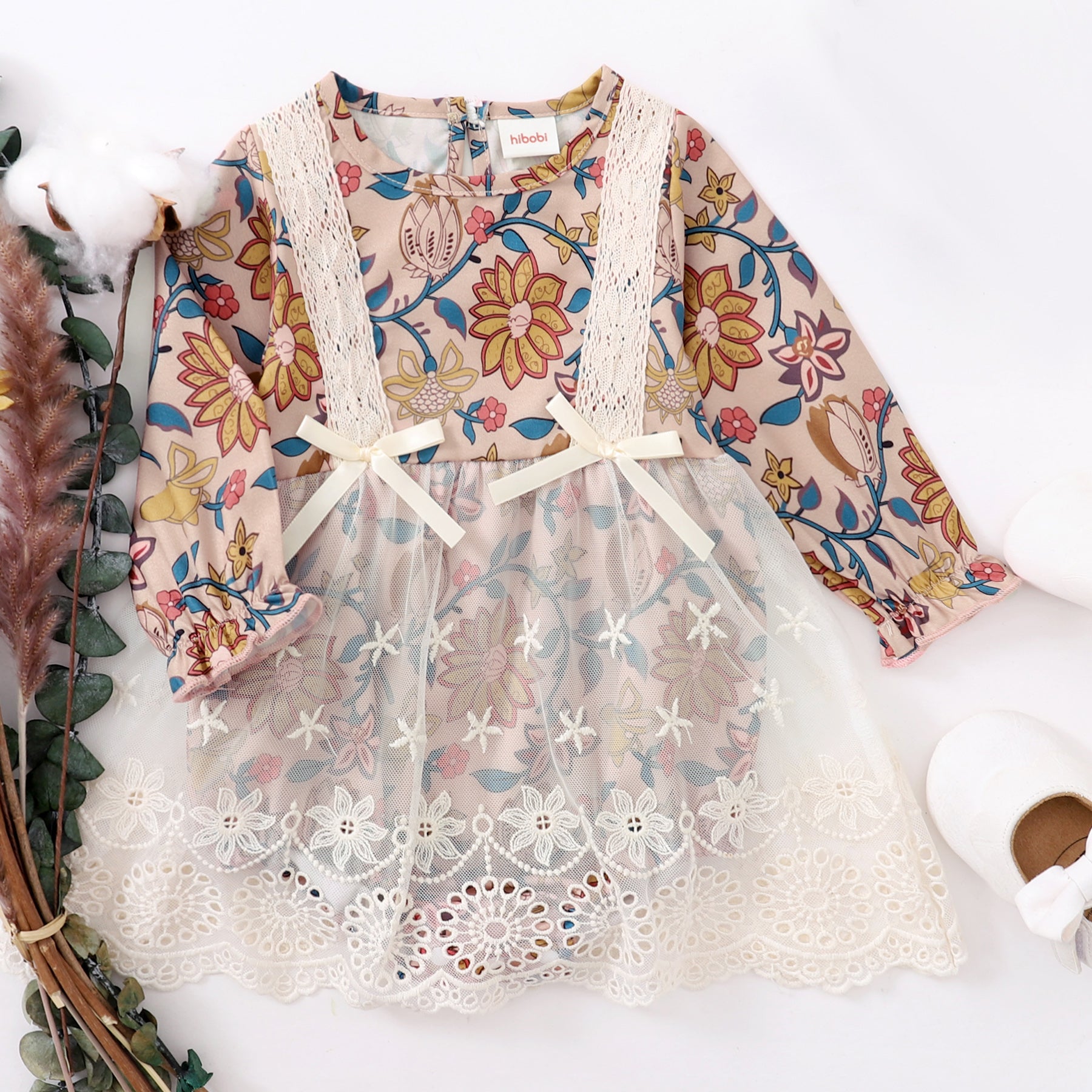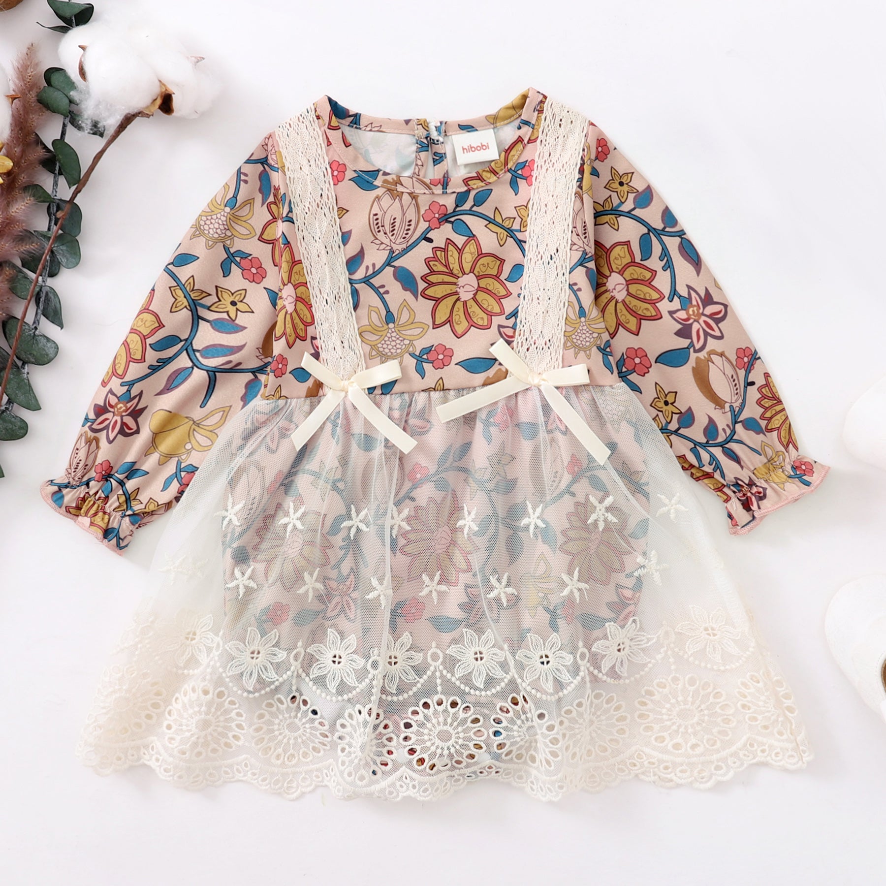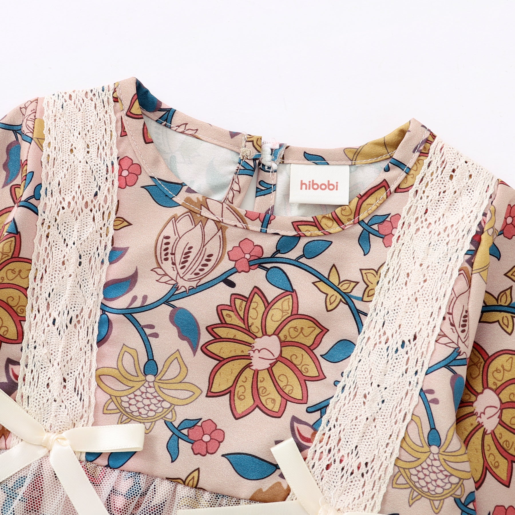 hibobi Baby Girl Flowers Spliced Mesh Long Sleeve Bodysuit Wholesale