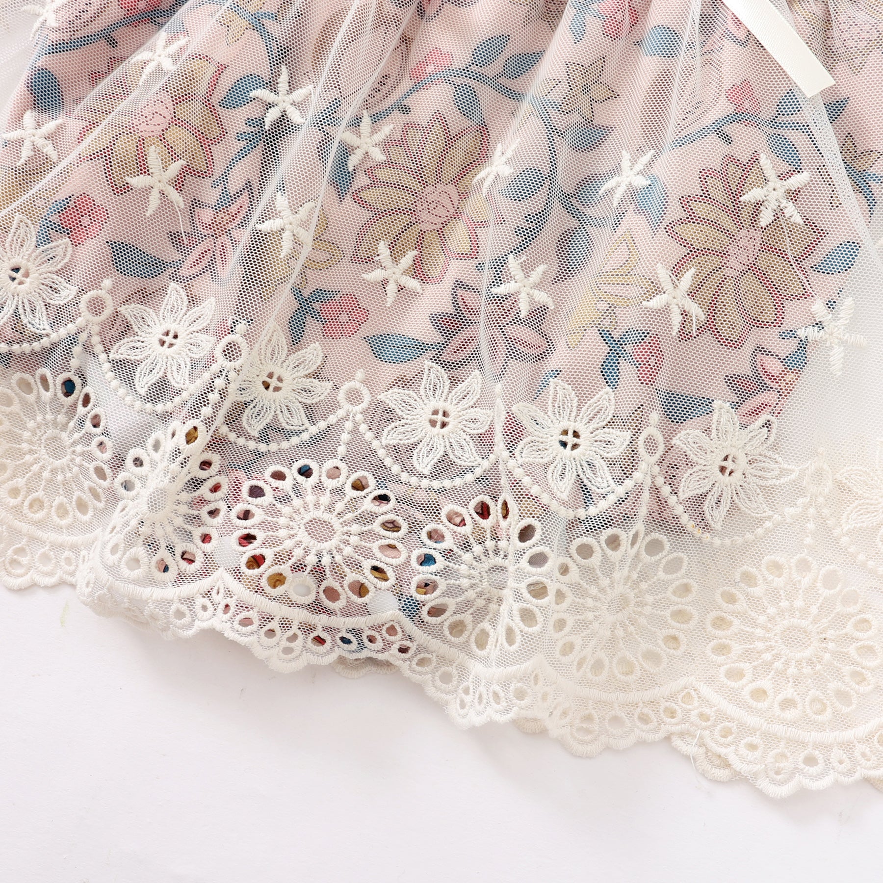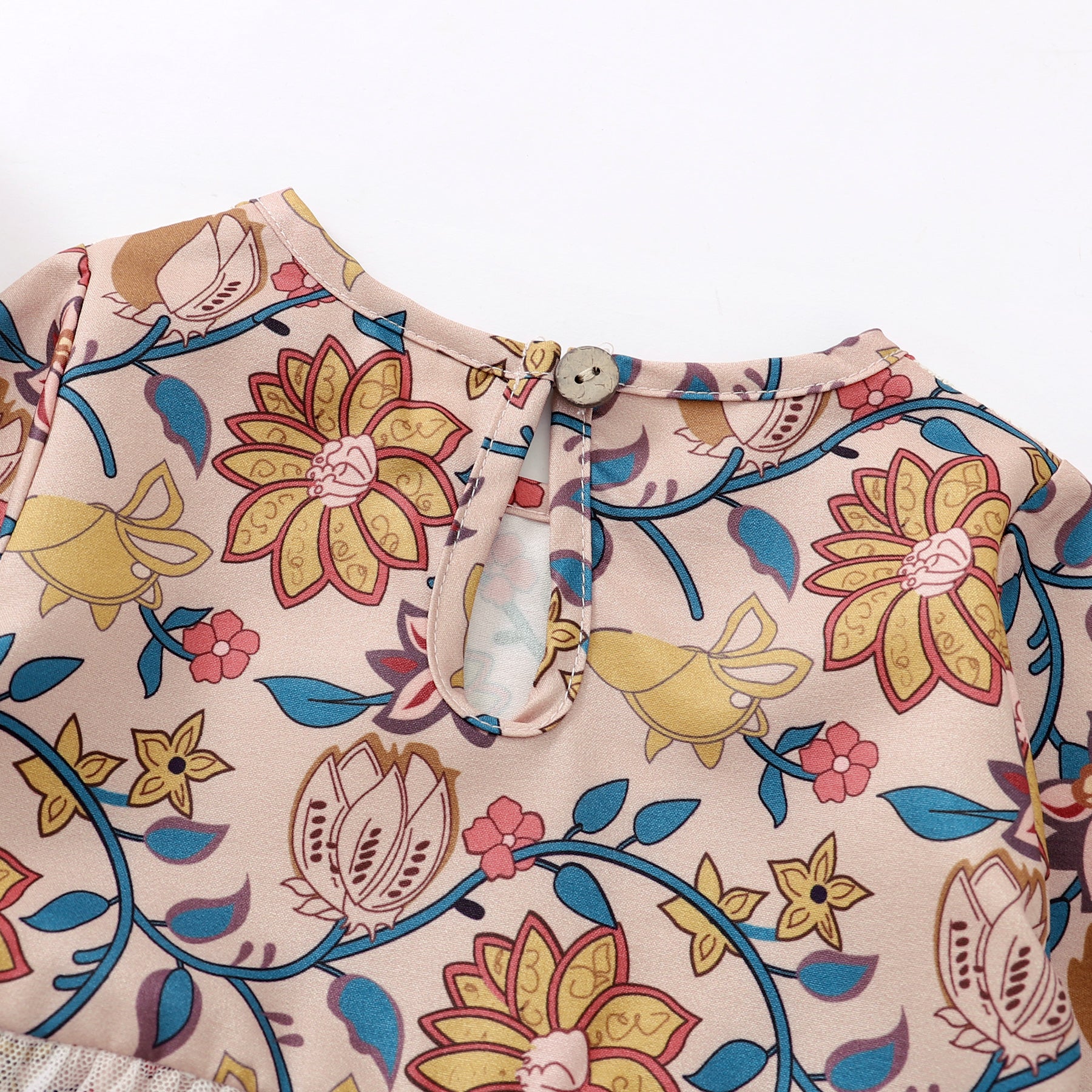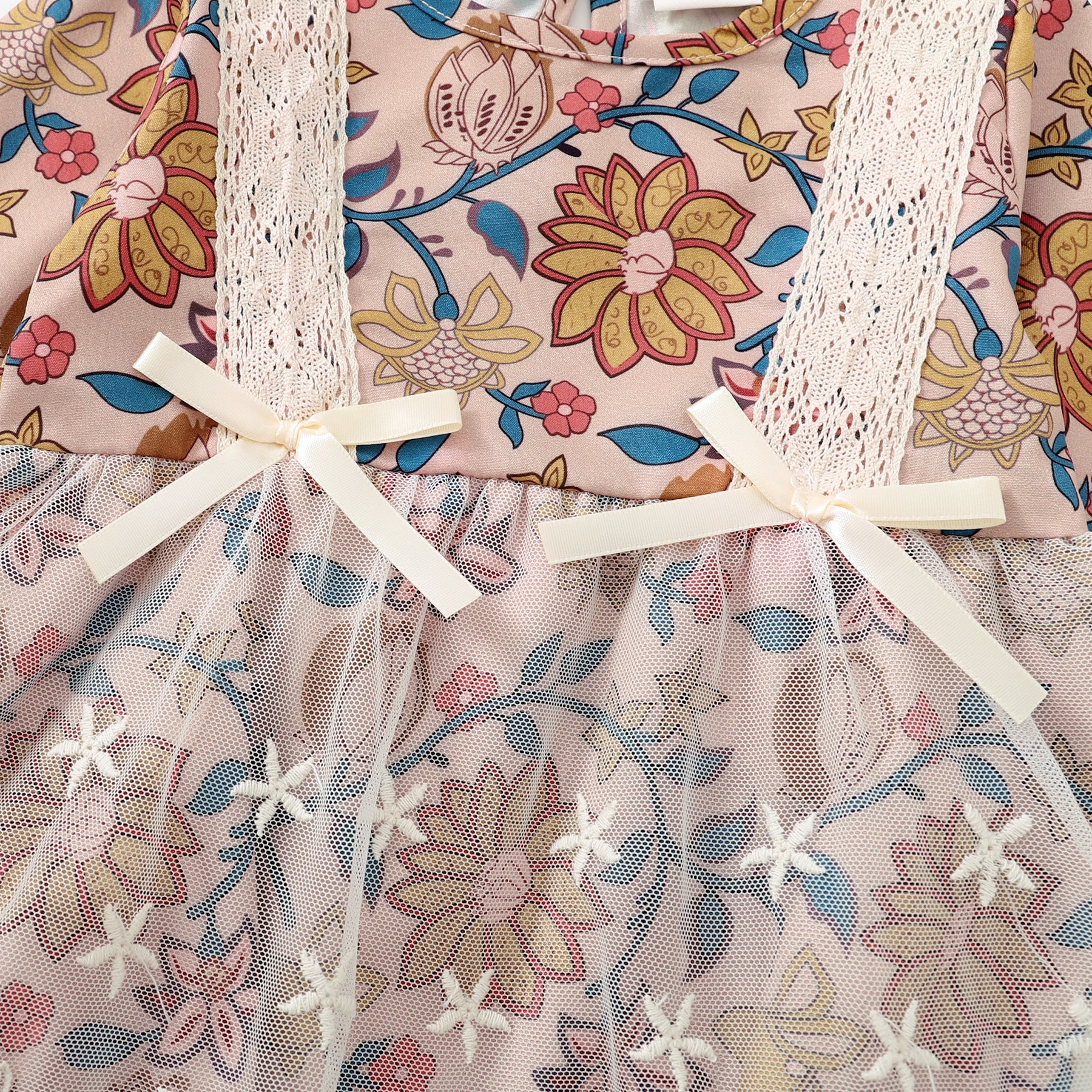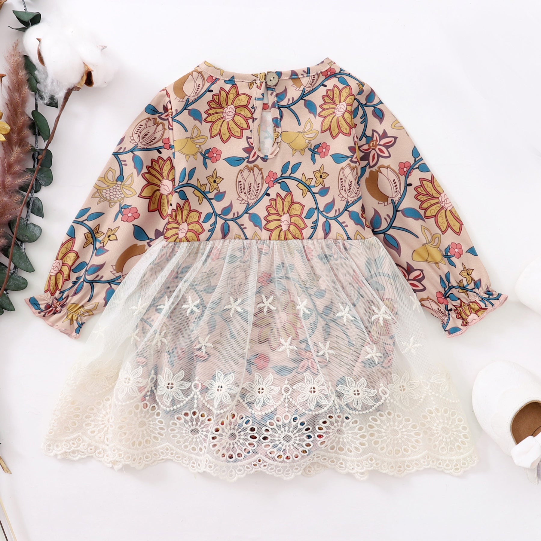 hibobi Baby Girl Flowers Spliced Mesh Long Sleeve Bodysuit Wholesale