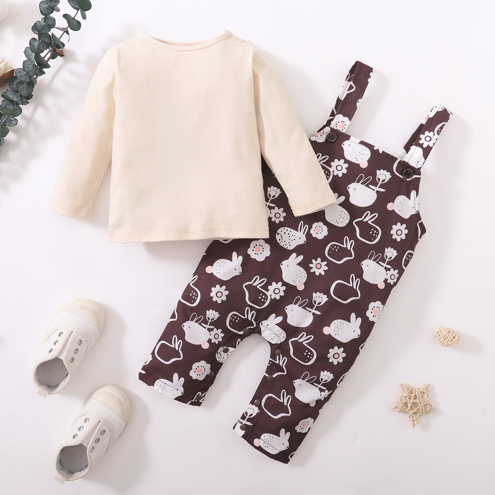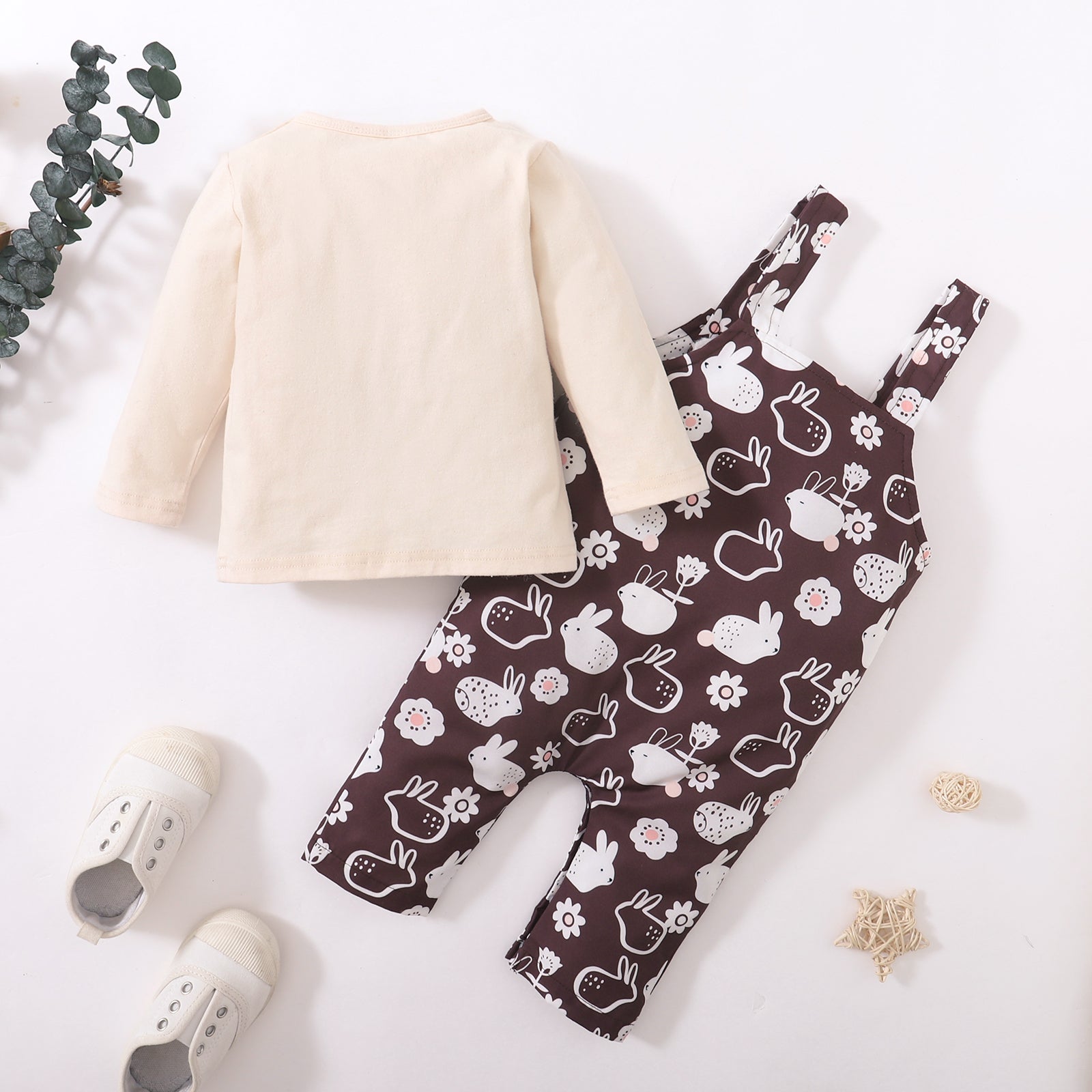 hibobi Baby Girl Long Sleeve Top & Floral Rabbit Print Suspender Pants Wholesale