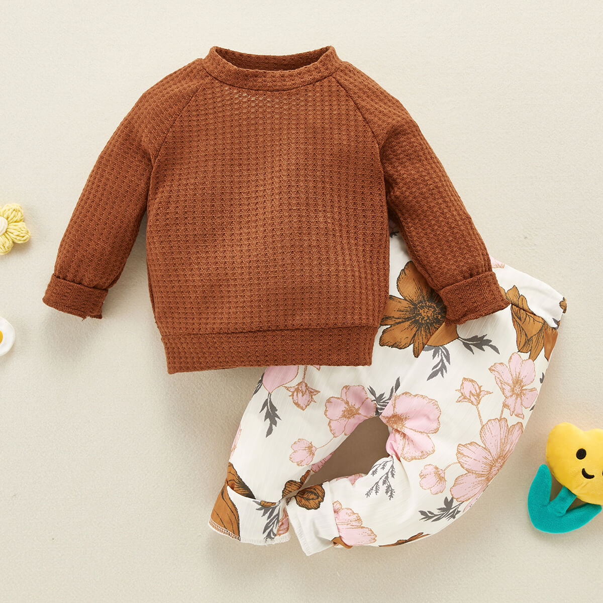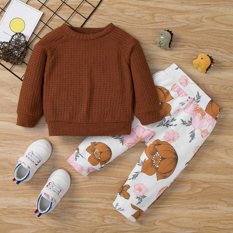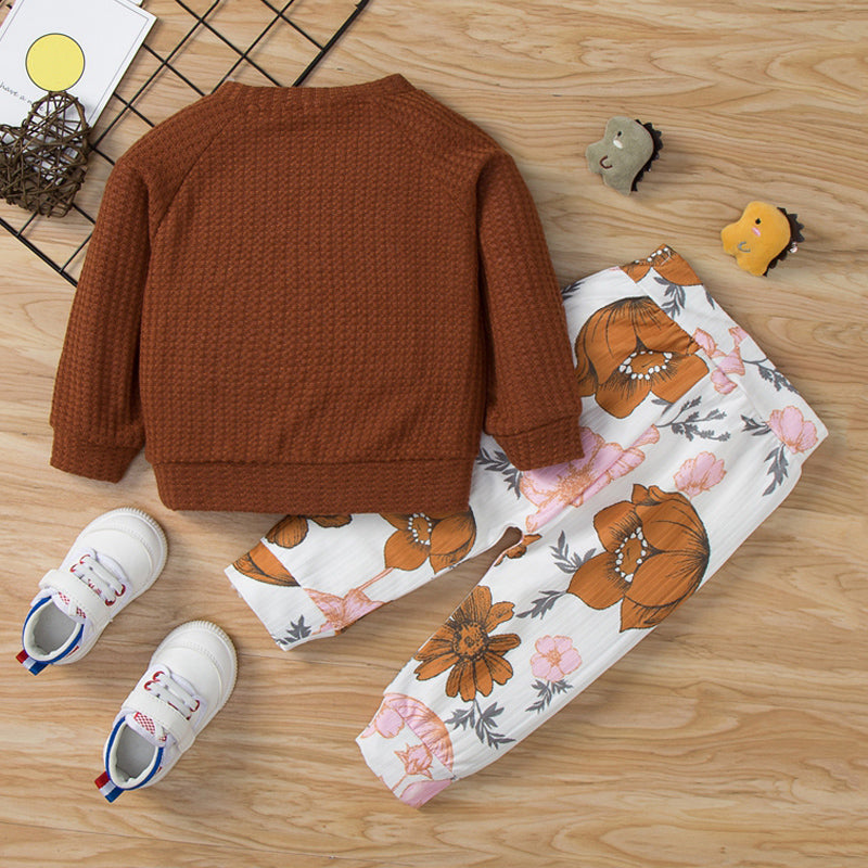 Baby Girl Casual Floral Print Long Sleeve Sweatshirt Set Wholesale