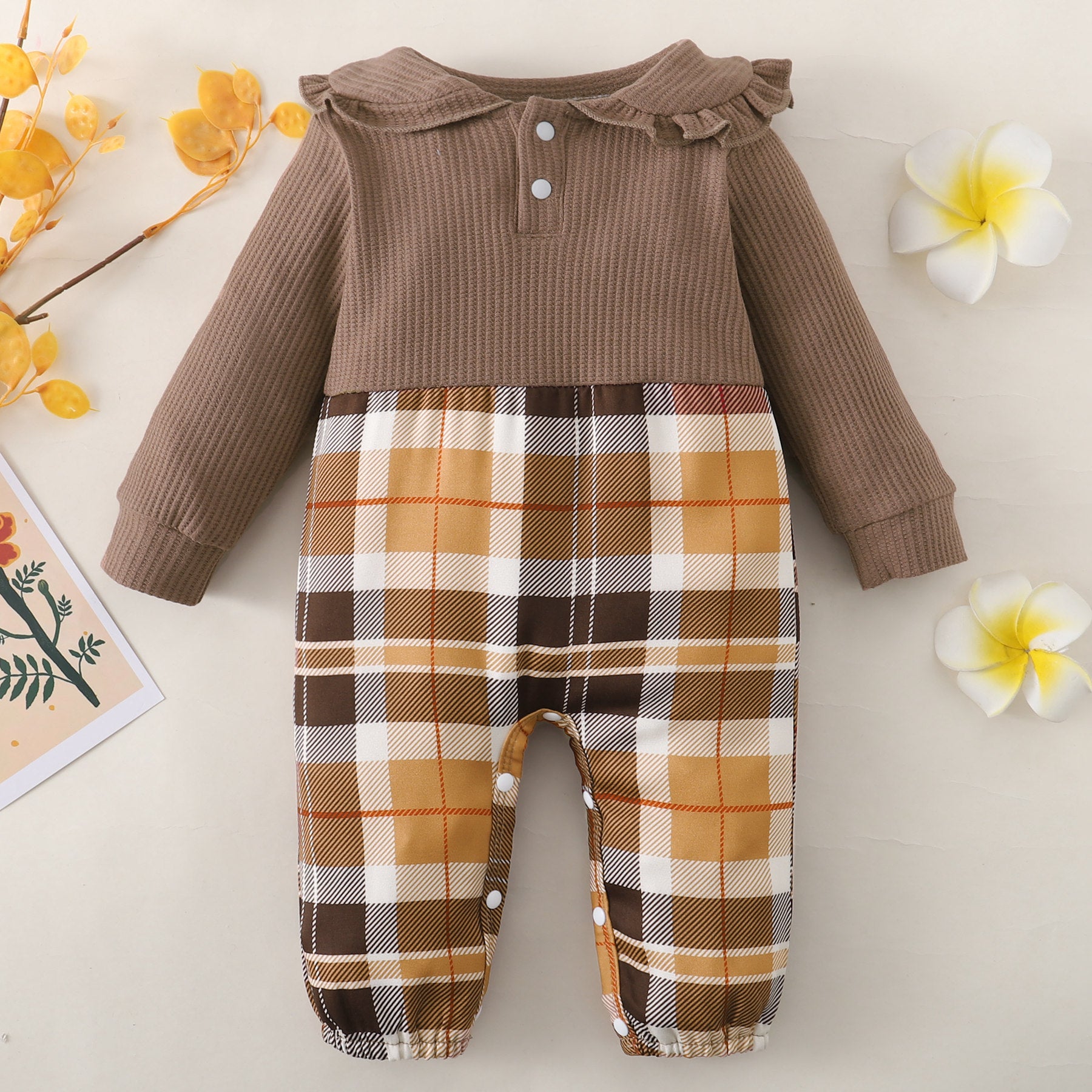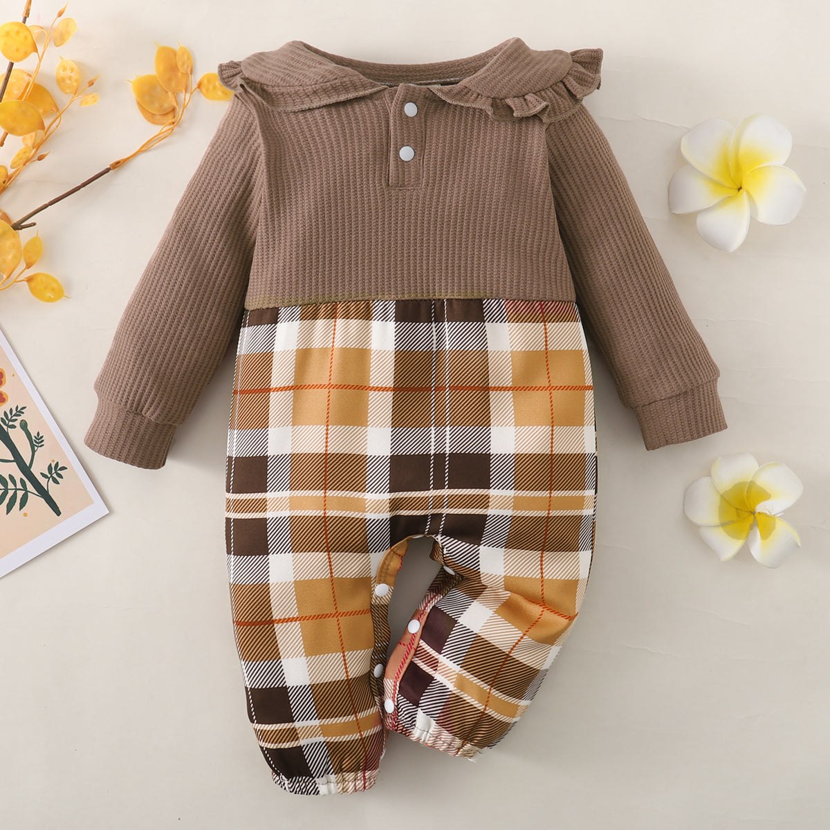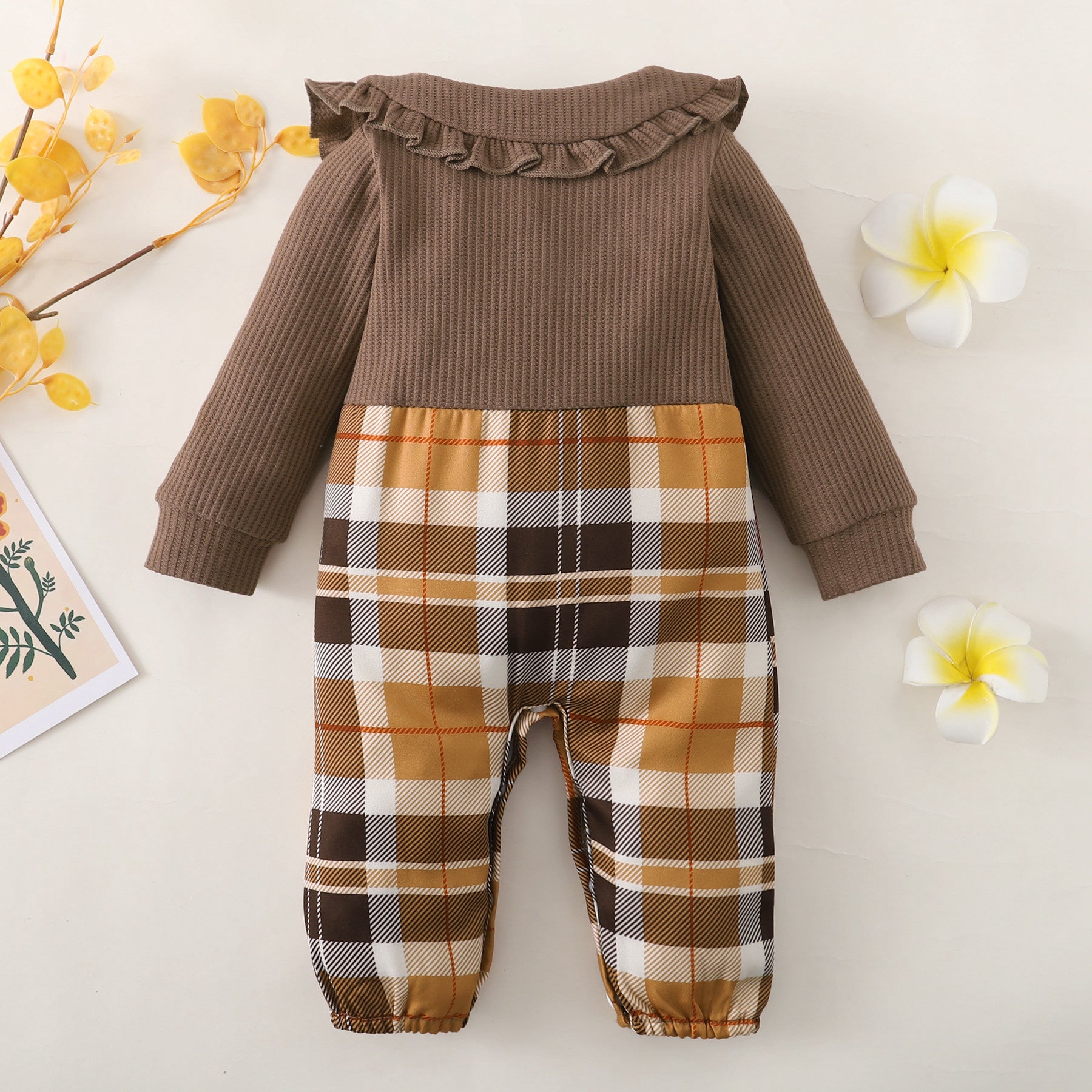 Baby Girl Doll-collar Ruffle Plaid Long Sleeve Jumpsuit Wholesale