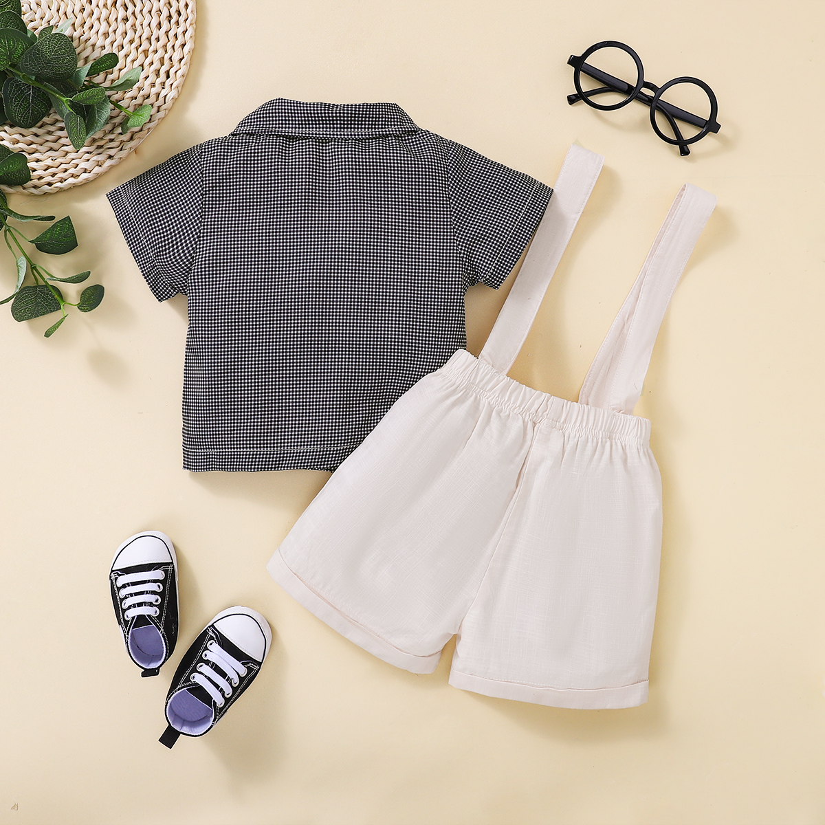 Baby Boy Gentleman Plaid Pattern Bow-knot Shirt & Suspender Shorts Wholesale