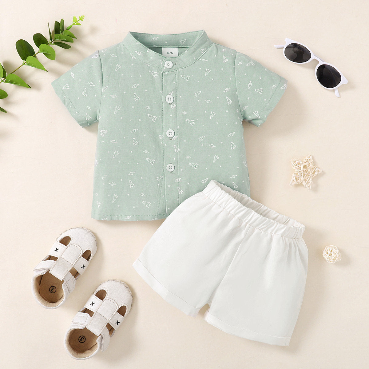 Baby Boy Space Star Rocket Pattern Stand-collar Shirt & Shorts Wholesale