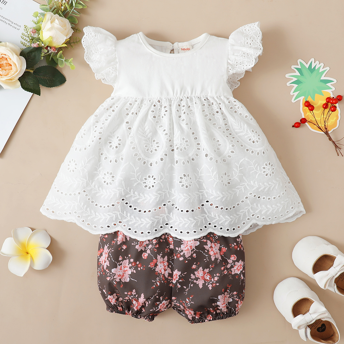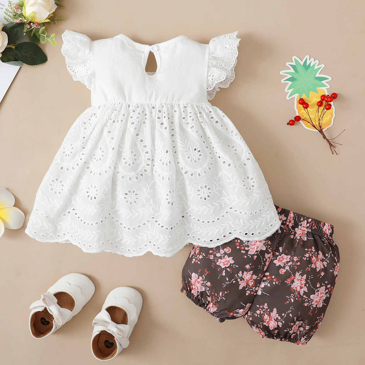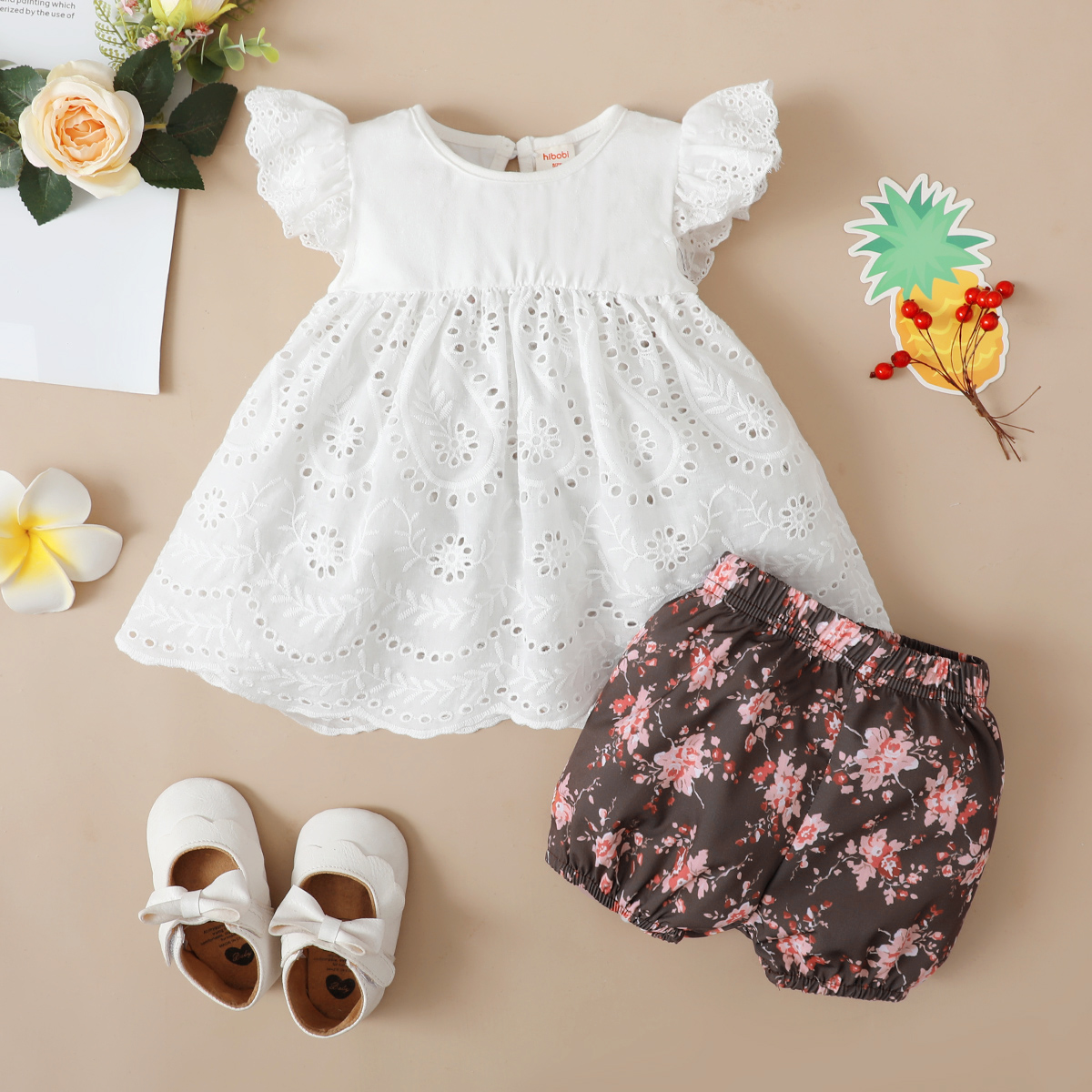 Baby Girl Embroidery Cotton Dress & Floral Print Shorts Wholesale