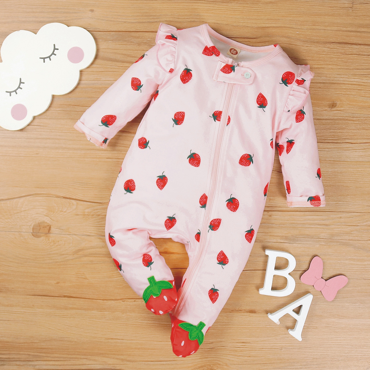 Baby Girl Sweet Strawberry Ruffle Jumpsuit Wholesale