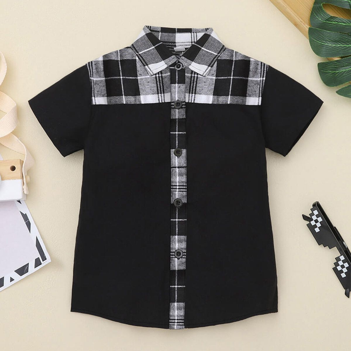 Boys' Summer Plaid Panel Short Sleeve Shirt Wholesale