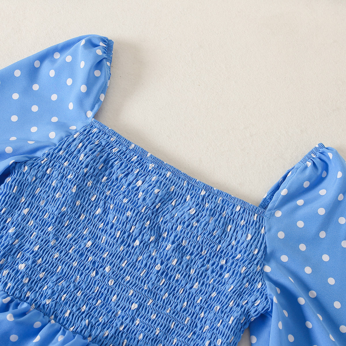 Causal Wave Point Print Long Sleeve Dress for Mom and Me Wholesale