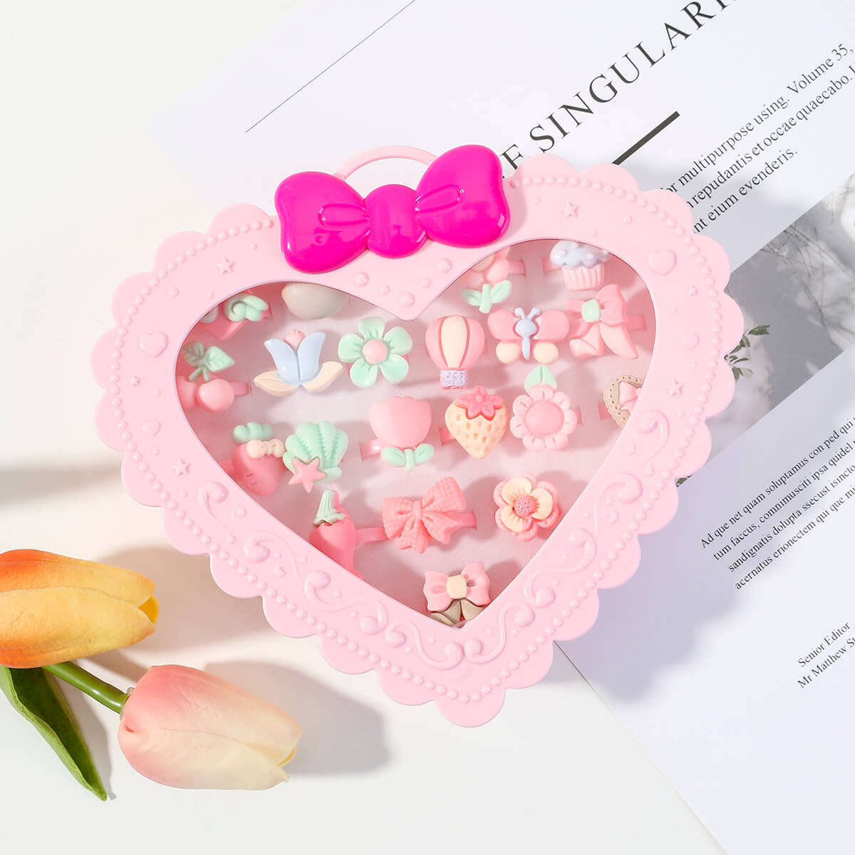 Children's Cartoon Ring Jewelry Play House Love Gift Box of 20 Pieces Wholesale