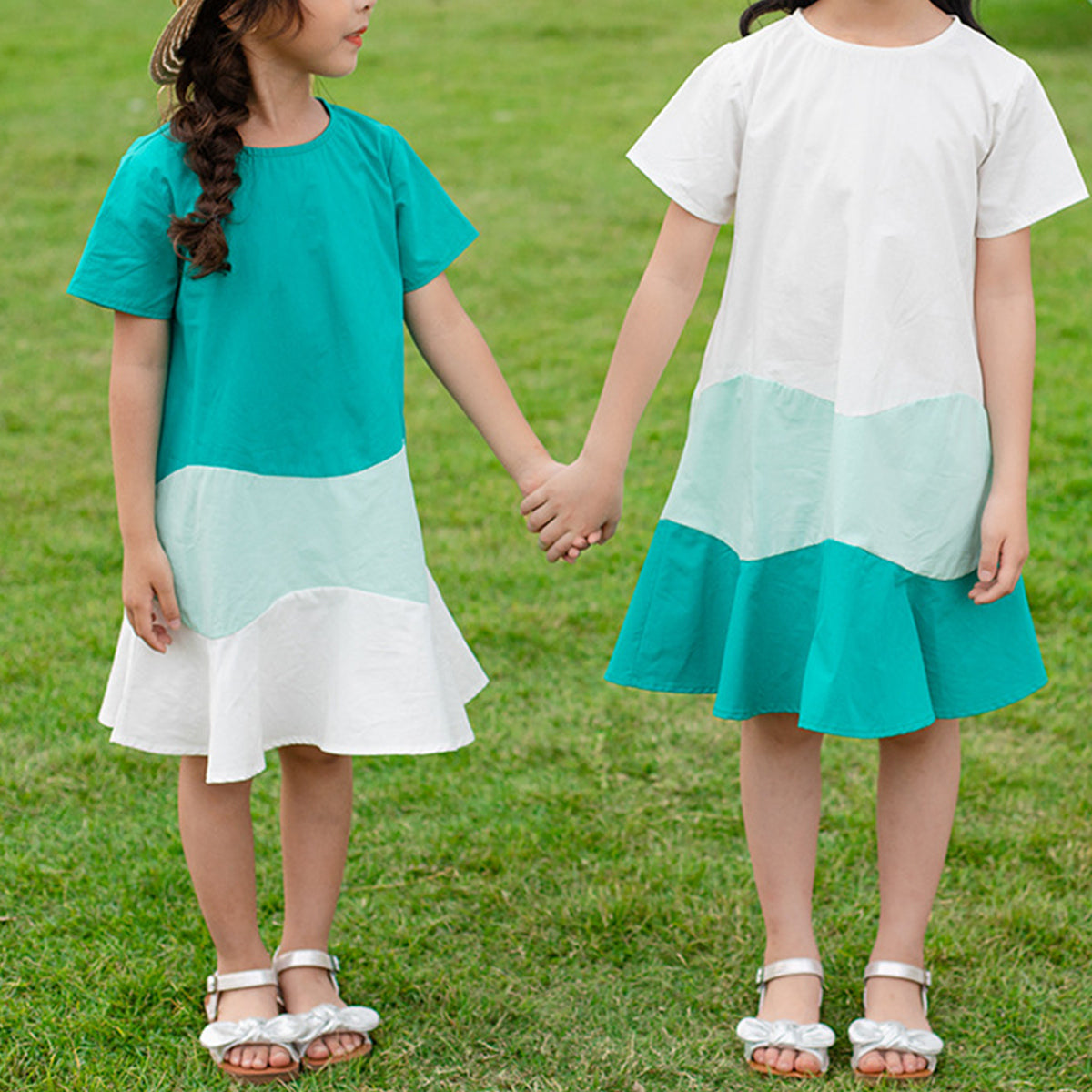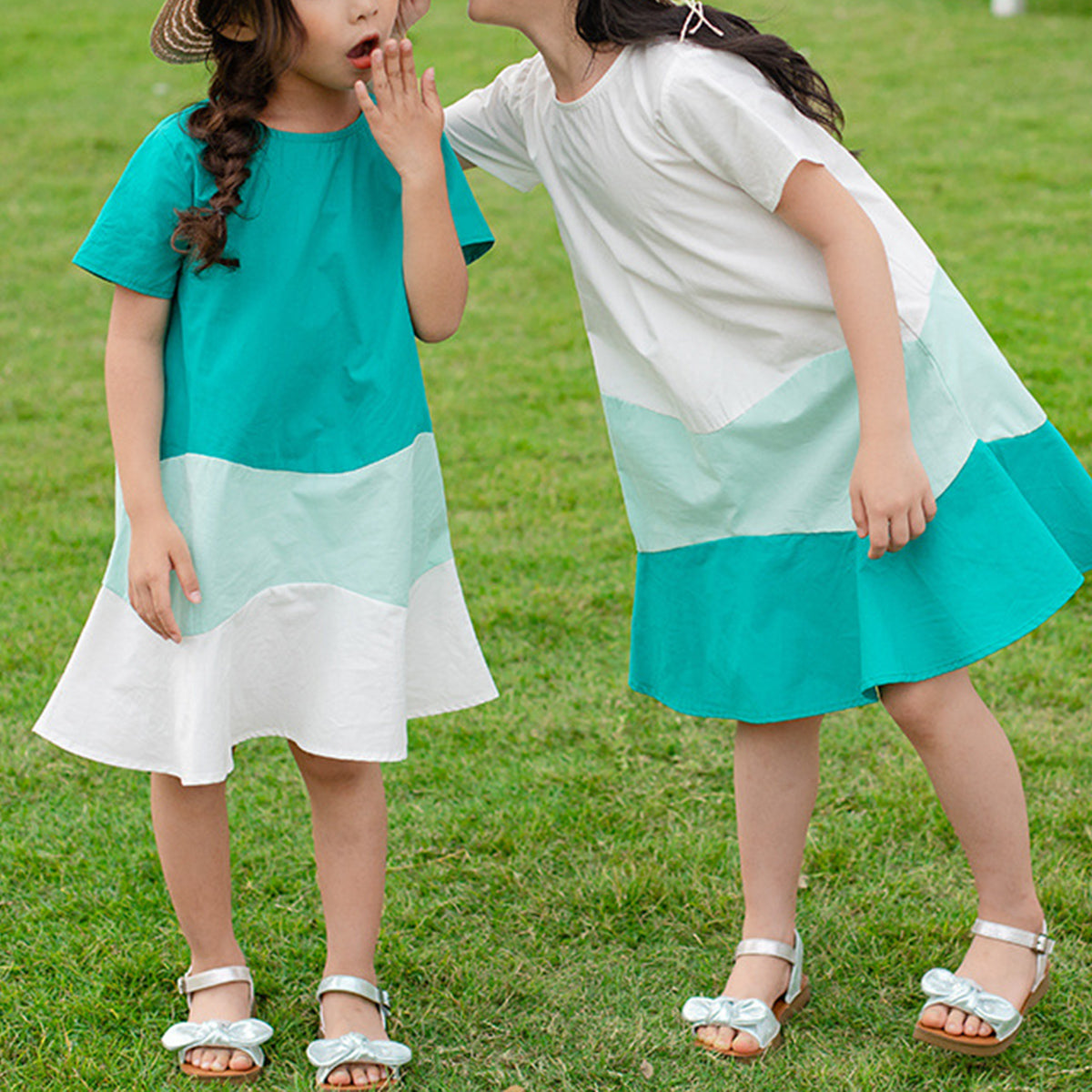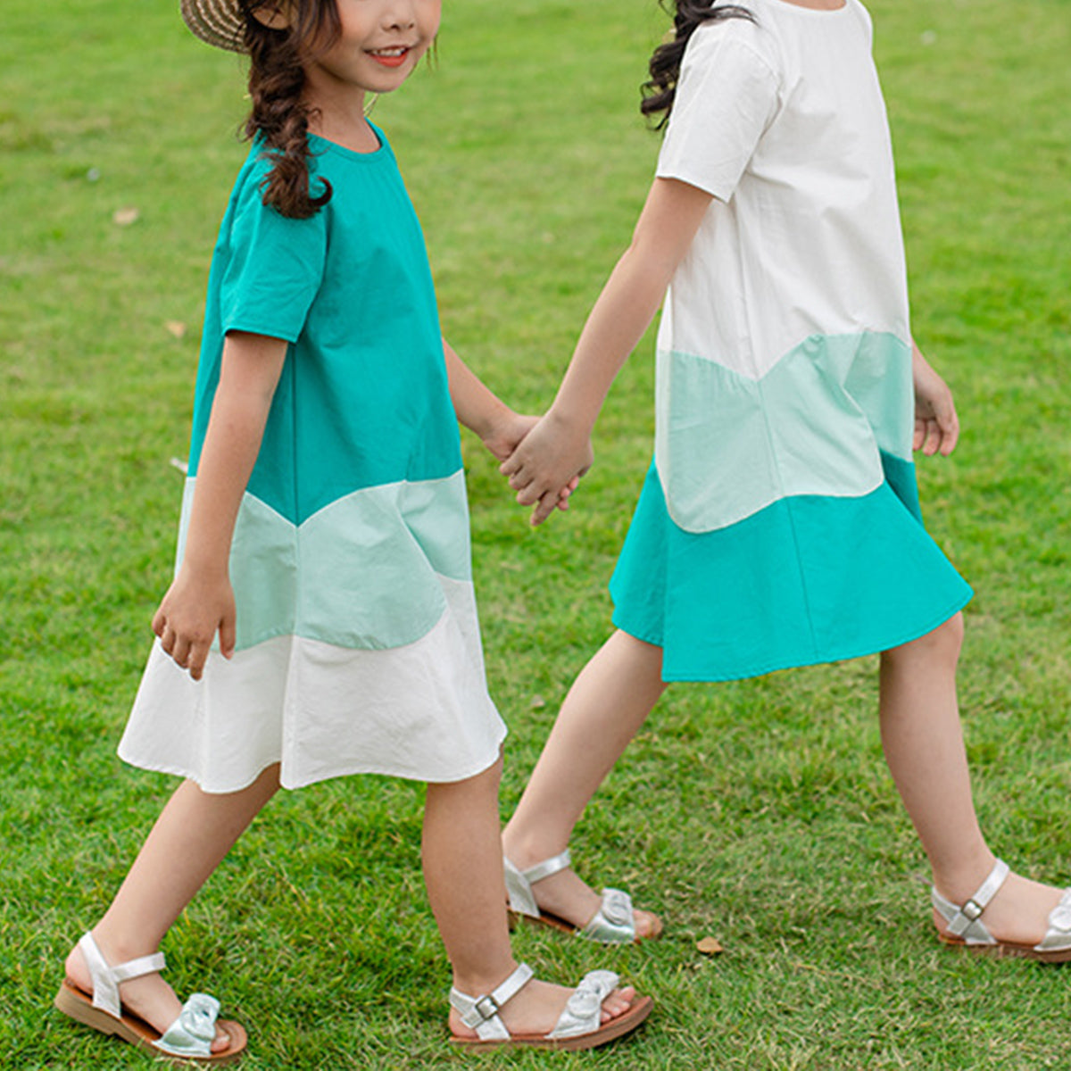 Color Stitching Round Collar Dress for Sister and Me Wholesale