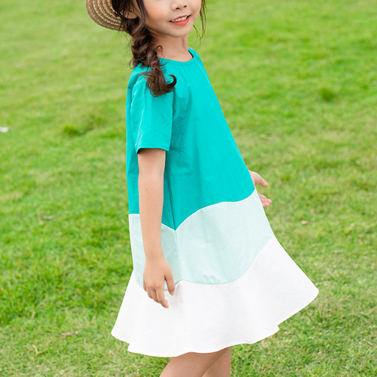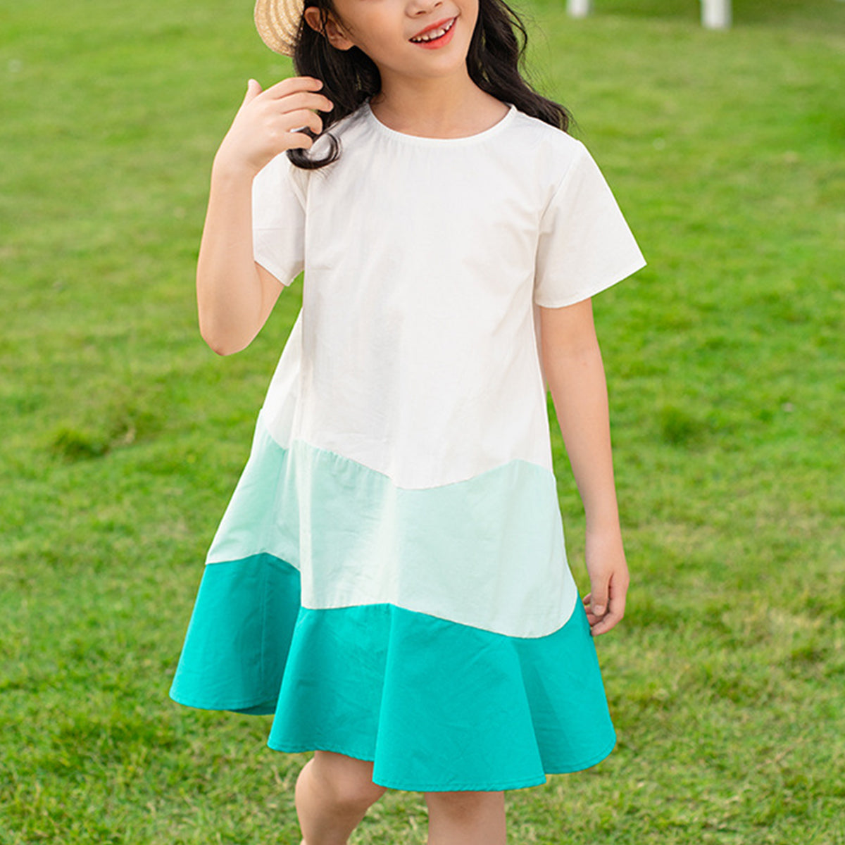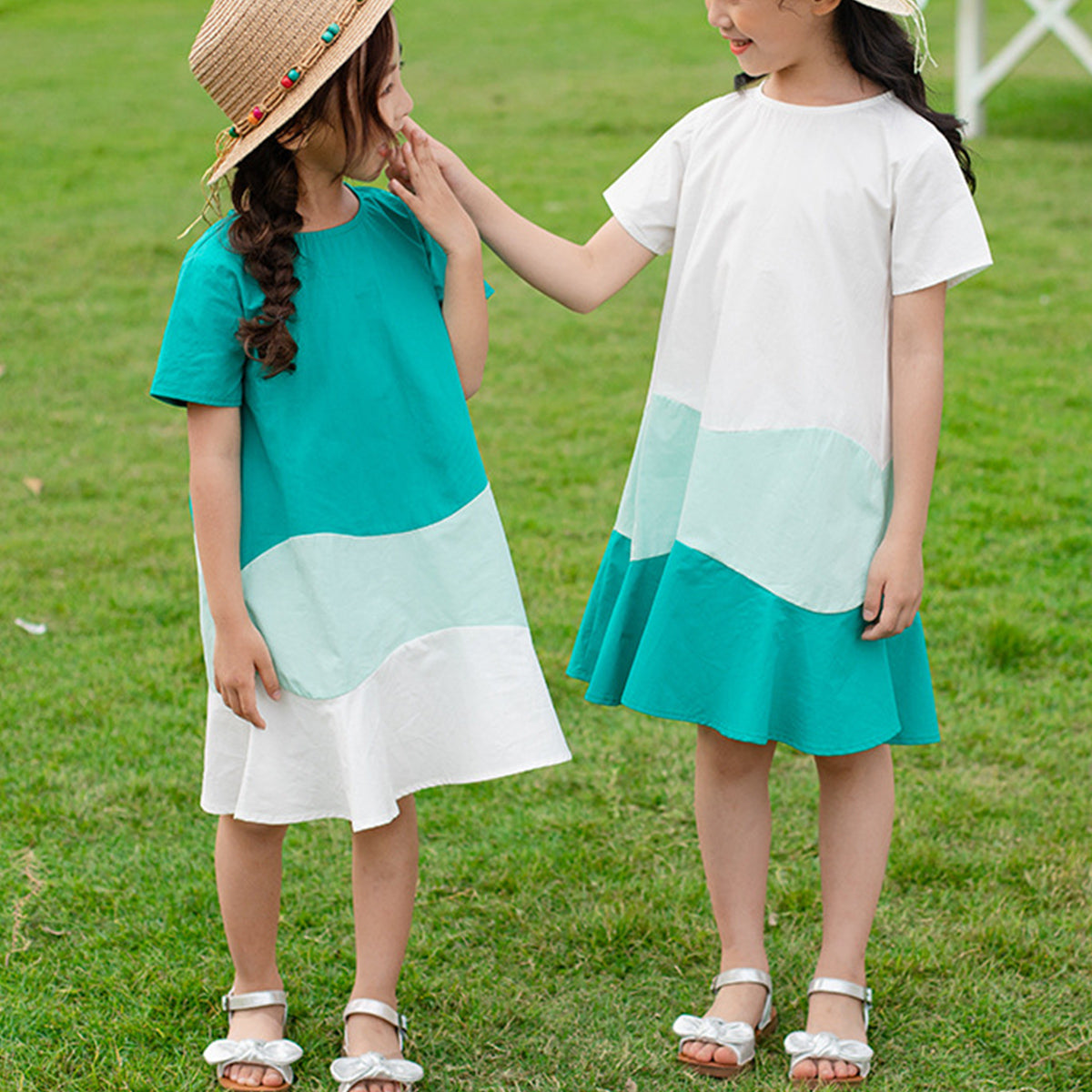 Color Stitching Round Collar Dress for Sister and Me Wholesale