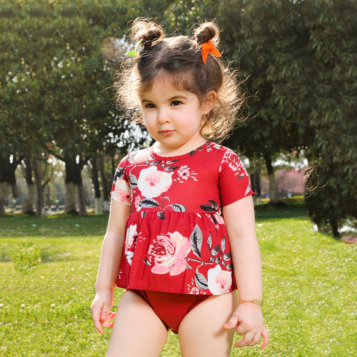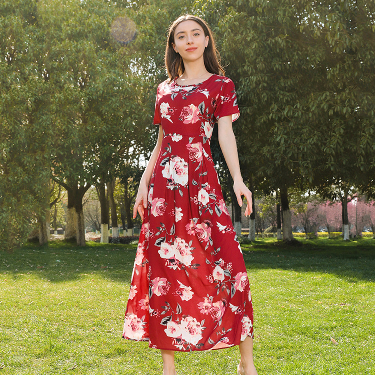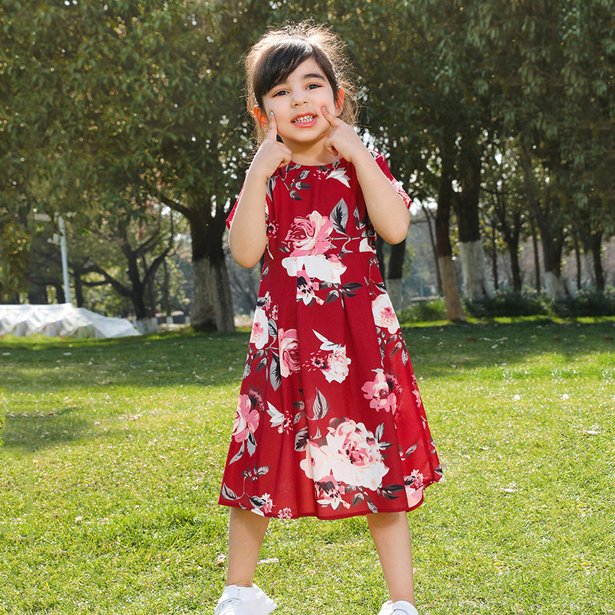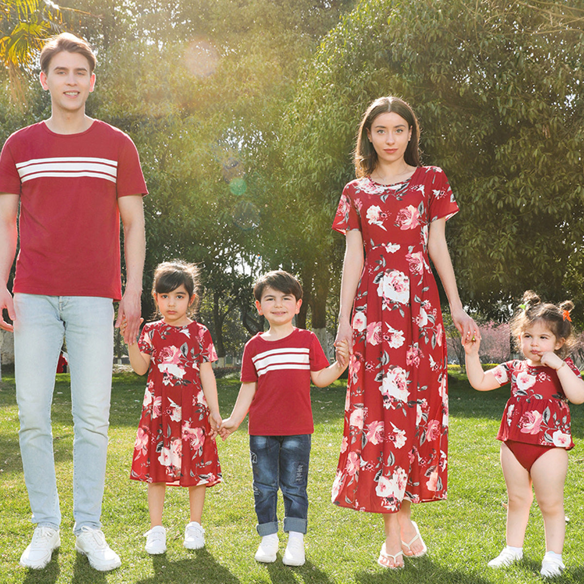 Family Matching Floral Print Short Sleeve Dress and T-shirt Wholesale