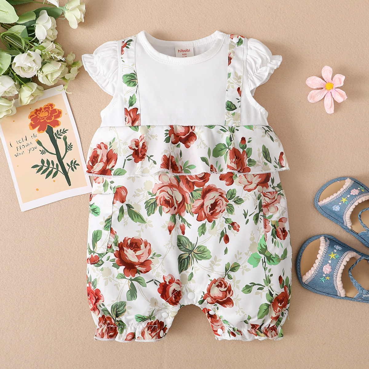 hibobi Baby Girl Floral Print Ruffle Jumpsuit Wholesale