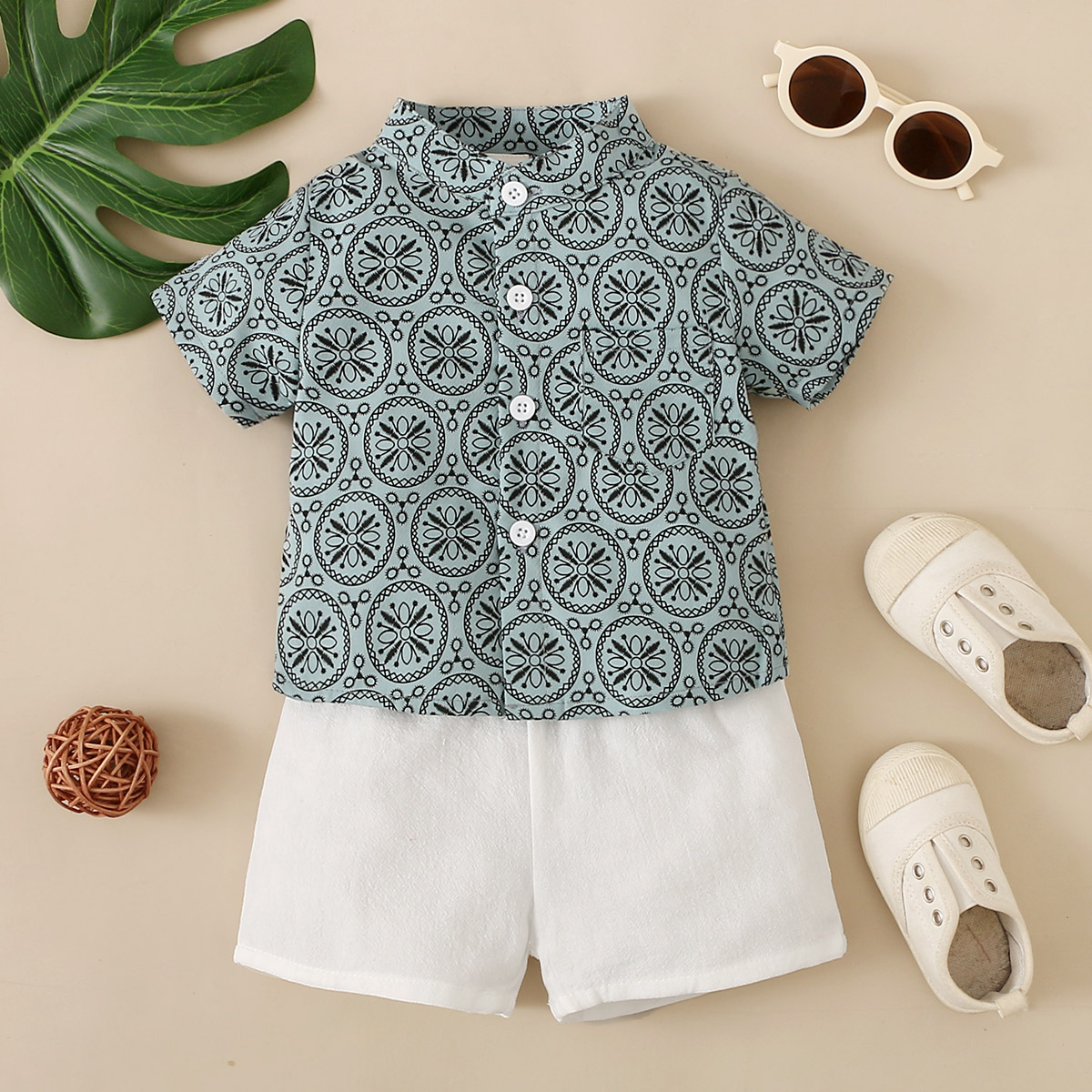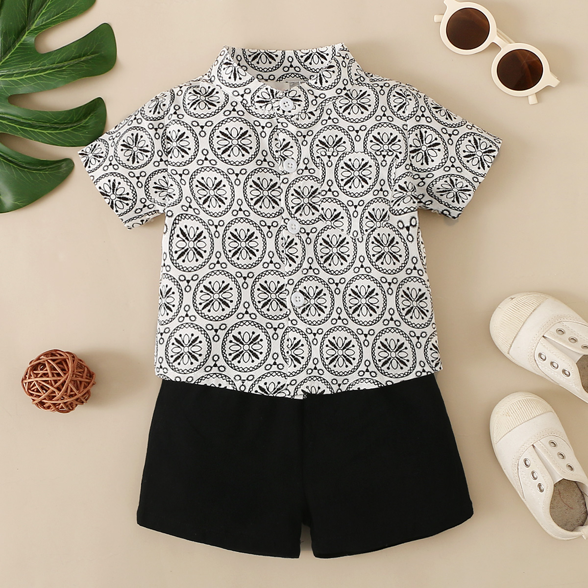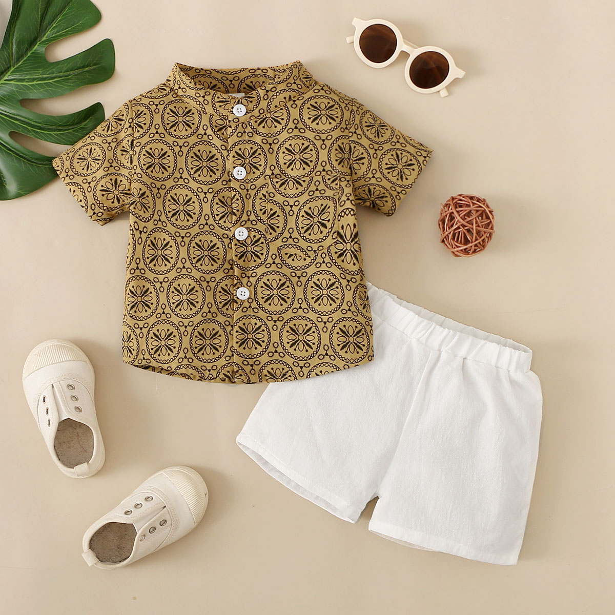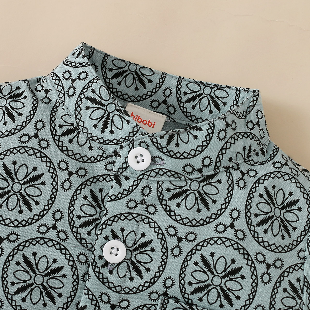 hibobi Boy Baby Stand Collar Short Sleeve Print Suit Wholesale
