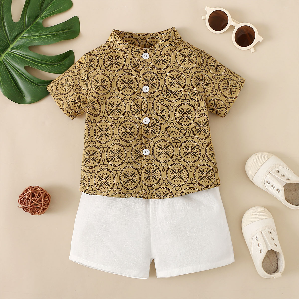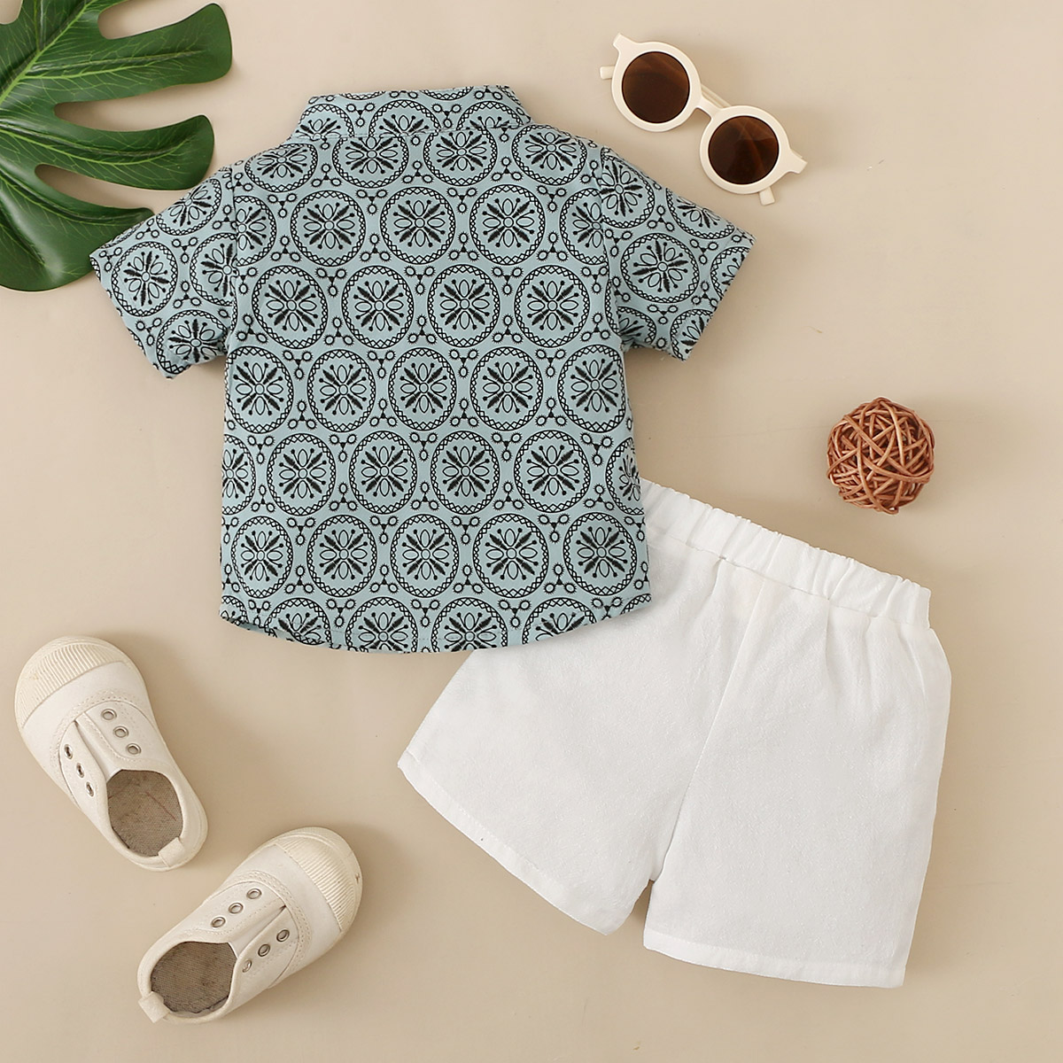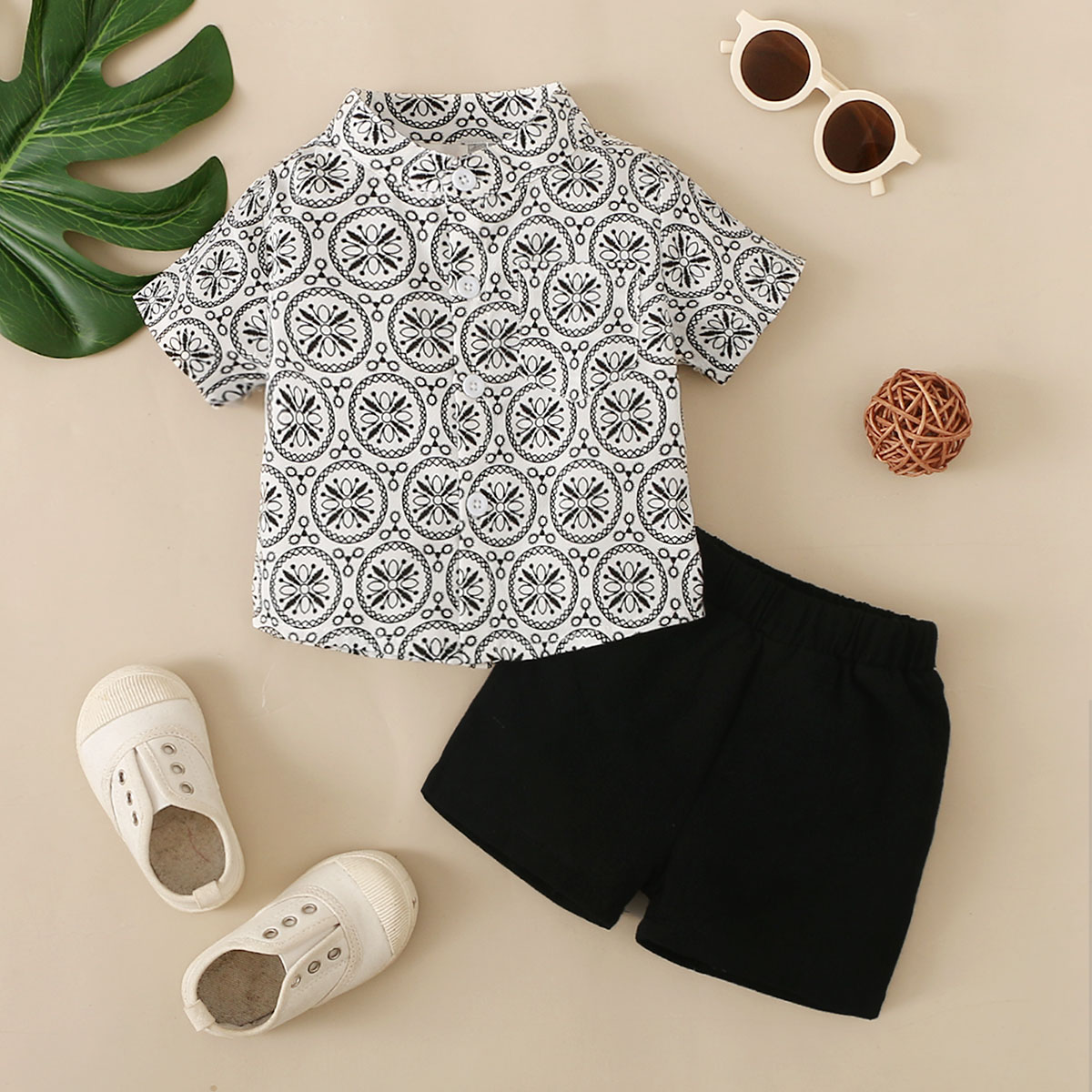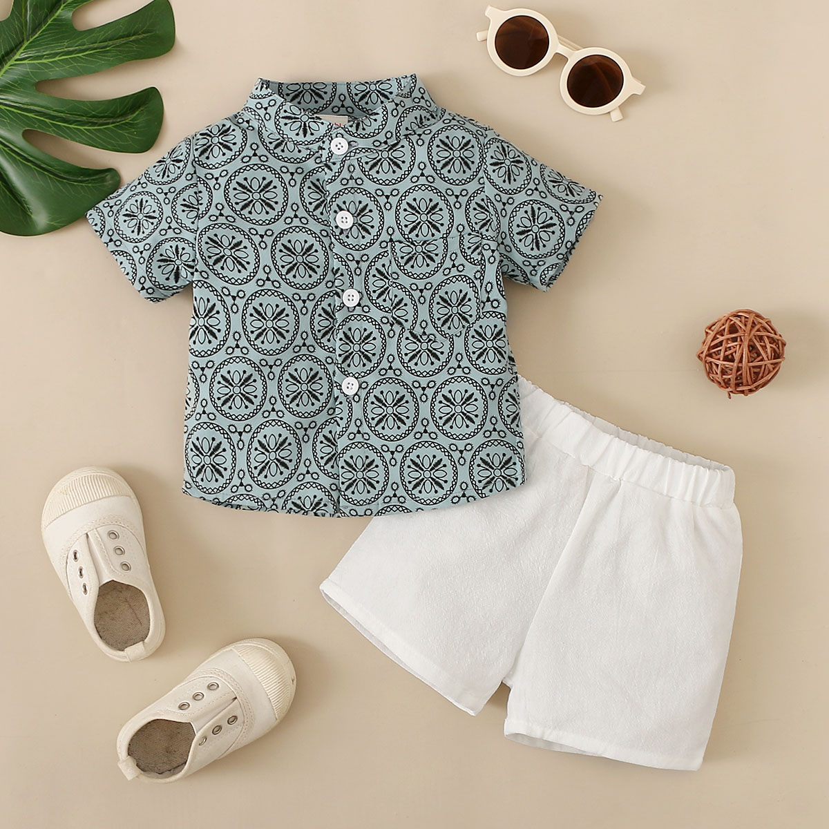 hibobi Boy Baby Stand Collar Short Sleeve Print Suit Wholesale