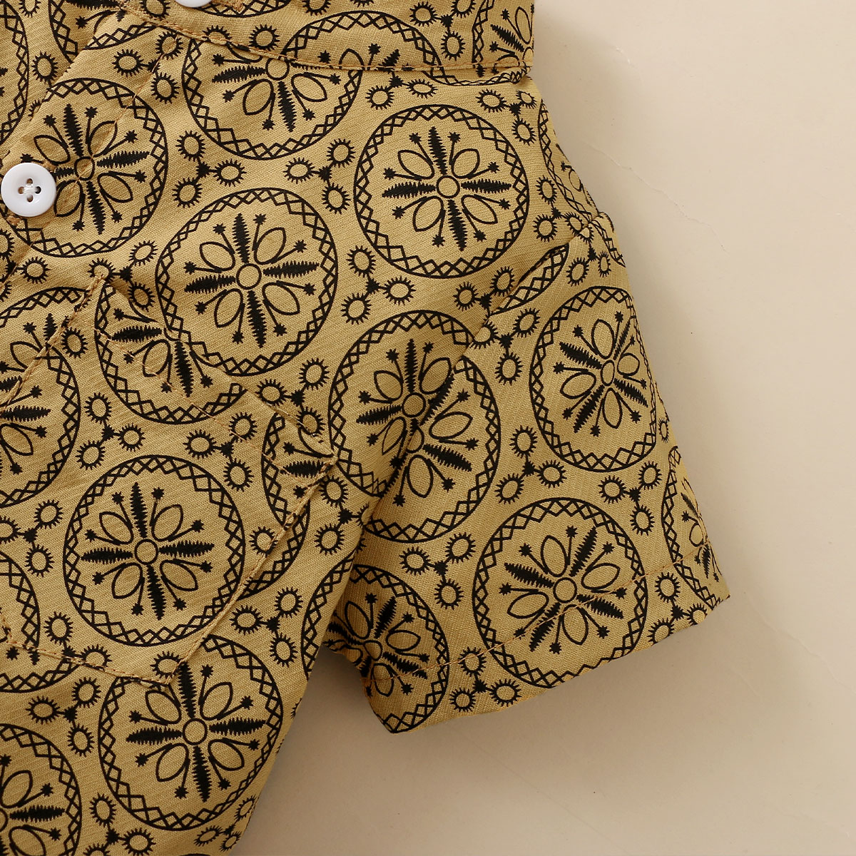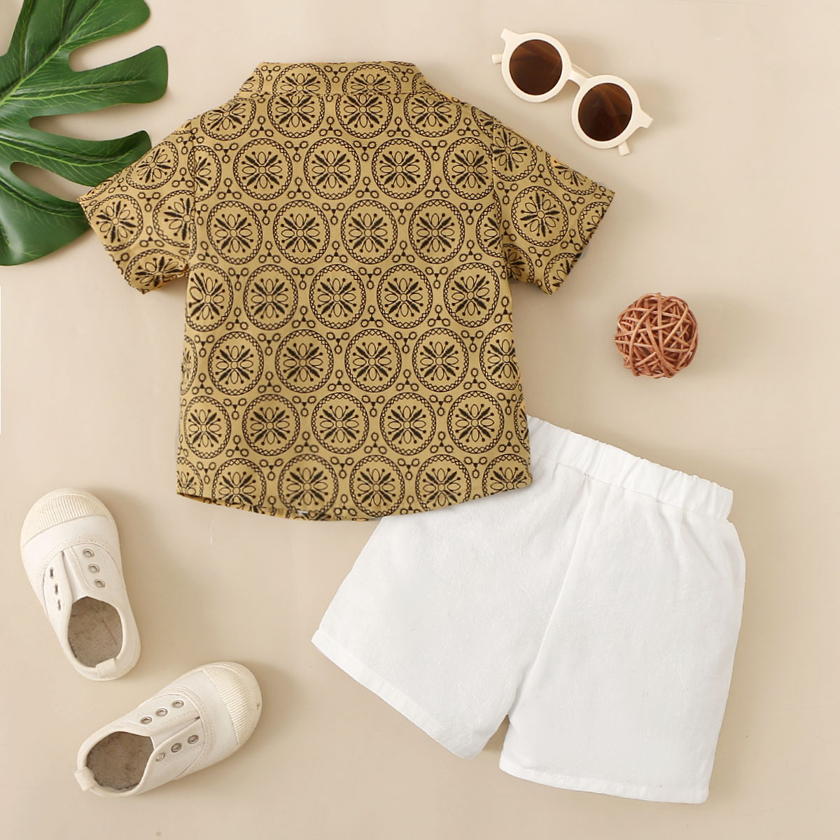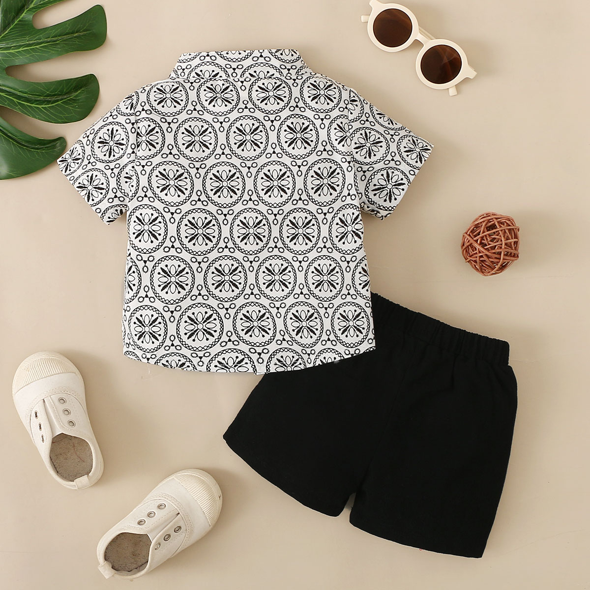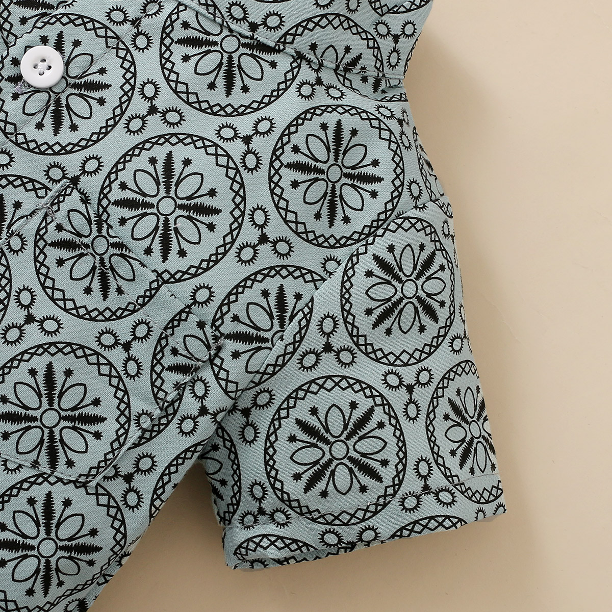 hibobi Boy Baby Stand Collar Short Sleeve Print Suit Wholesale