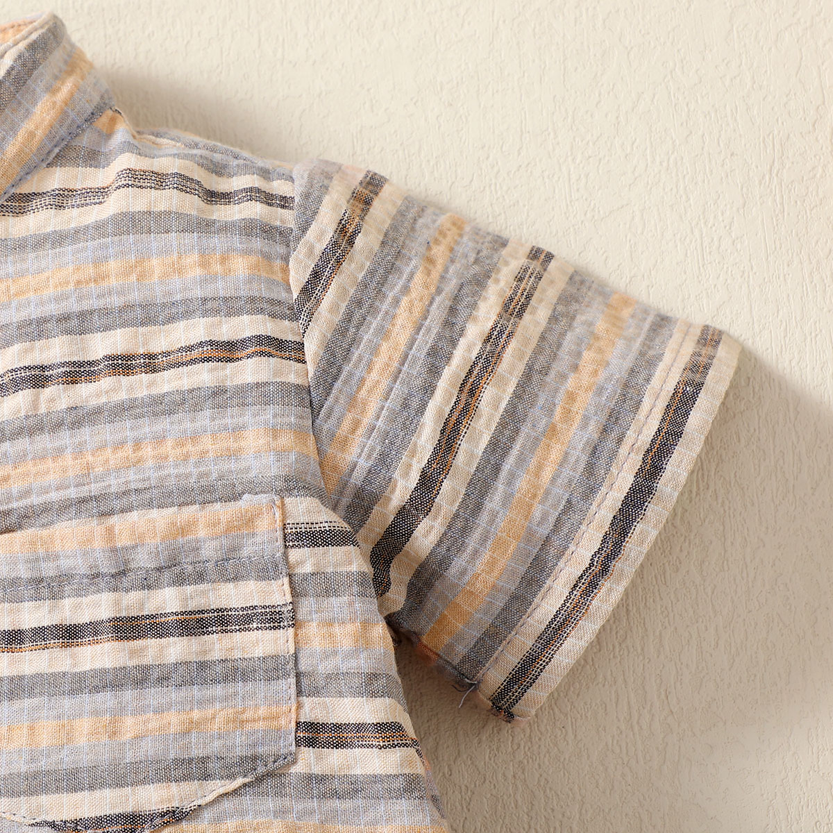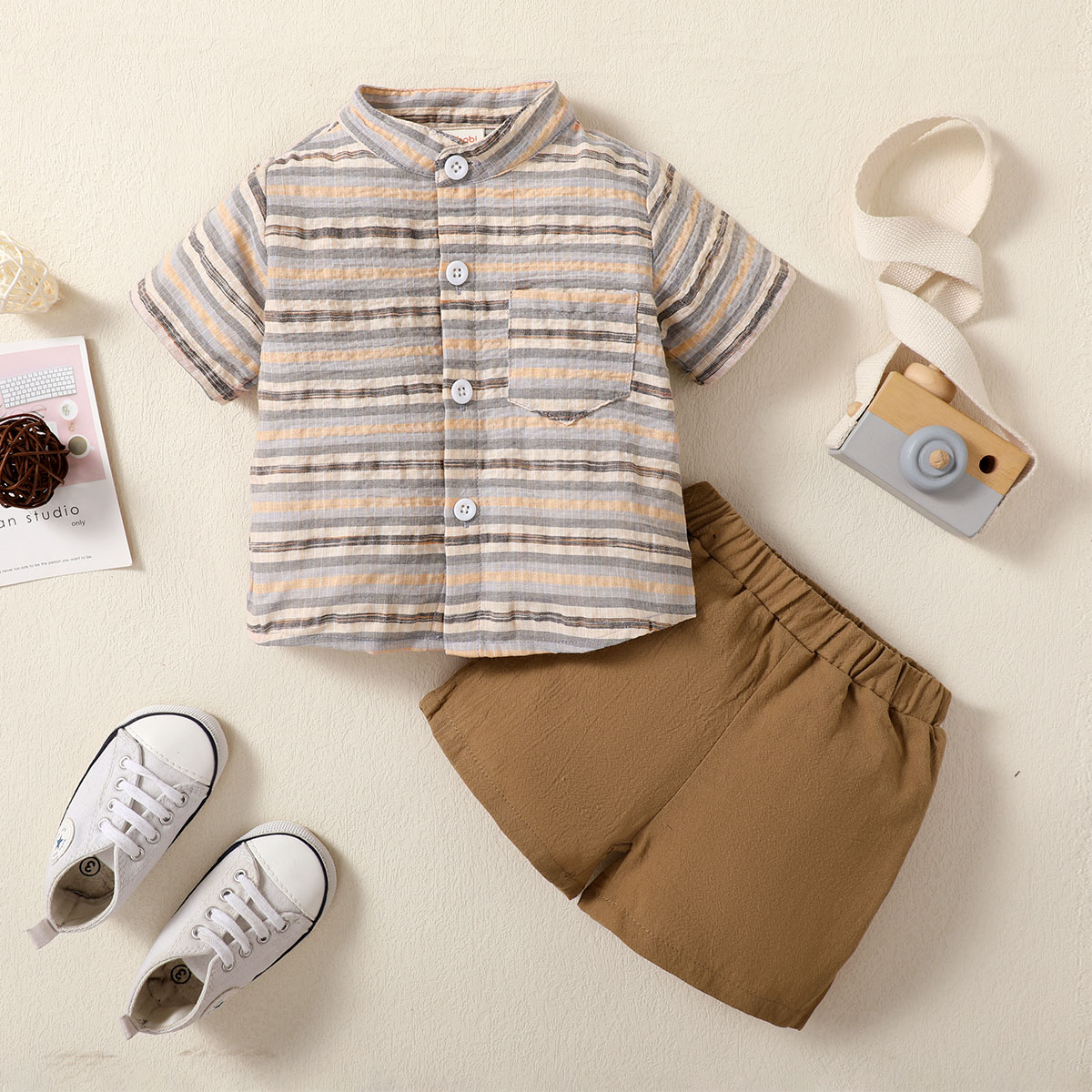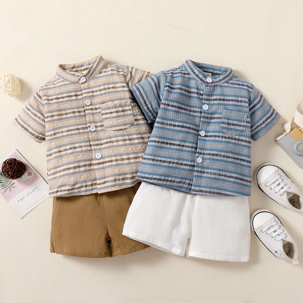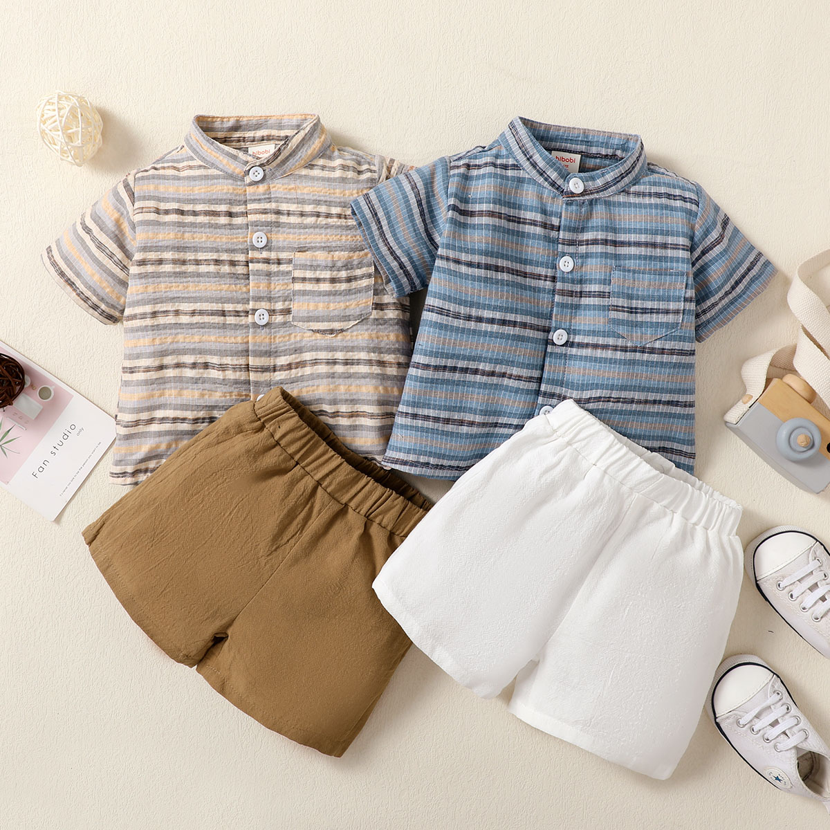 hibobi Boy Baby Stand Collar Short Sleeve Stripes Print Suit Wholesale