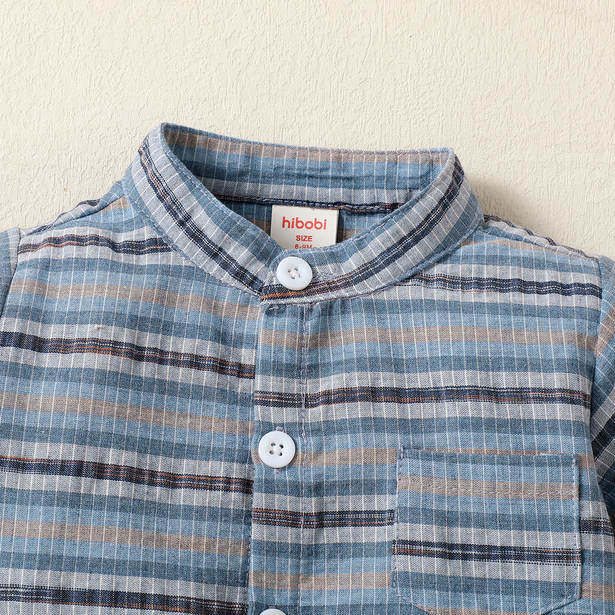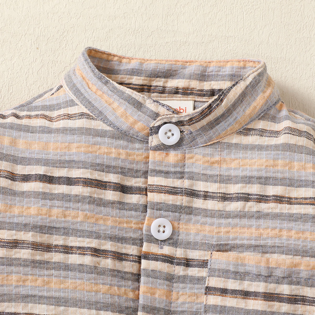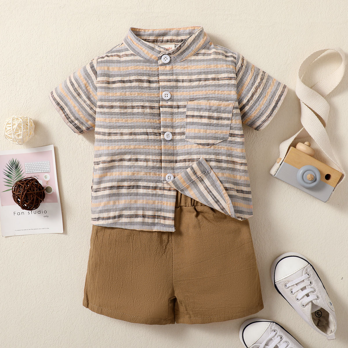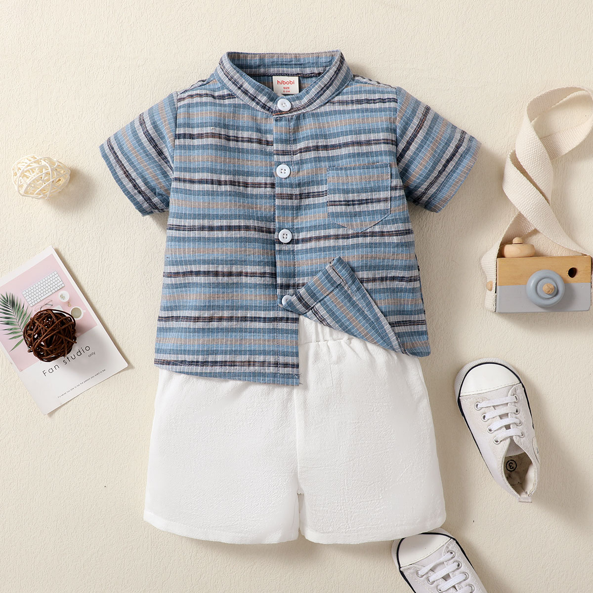 hibobi Boy Baby Stand Collar Short Sleeve Stripes Print Suit Wholesale