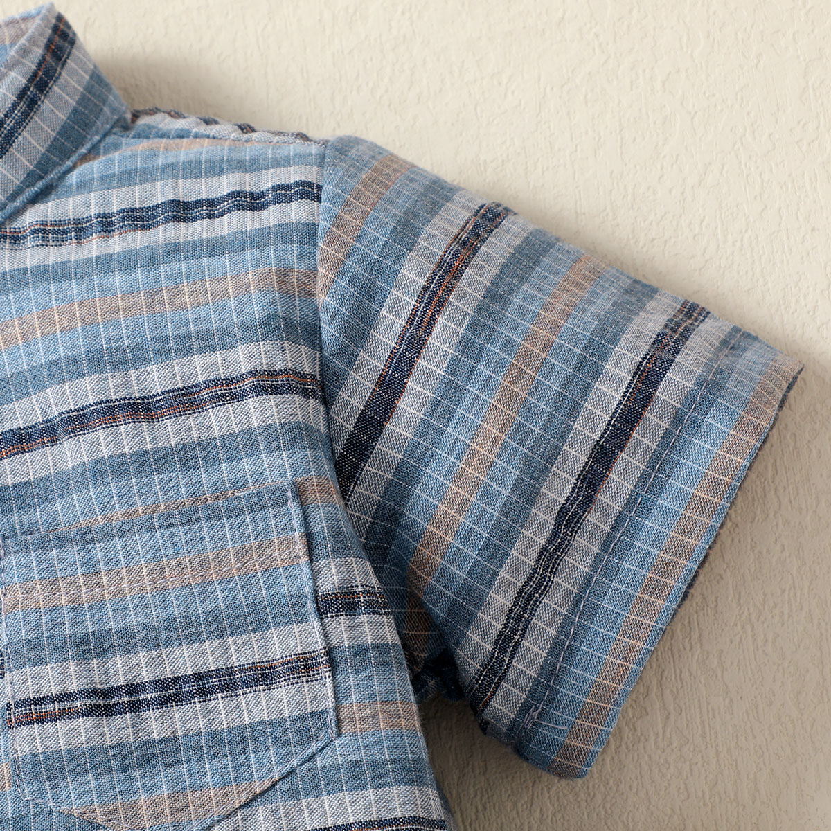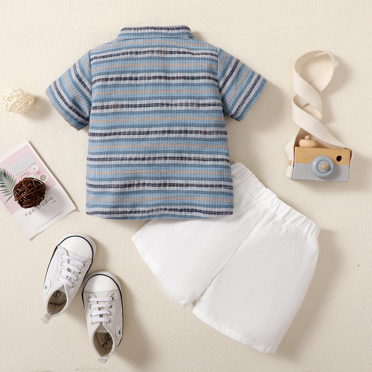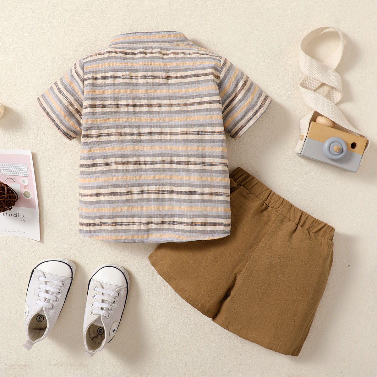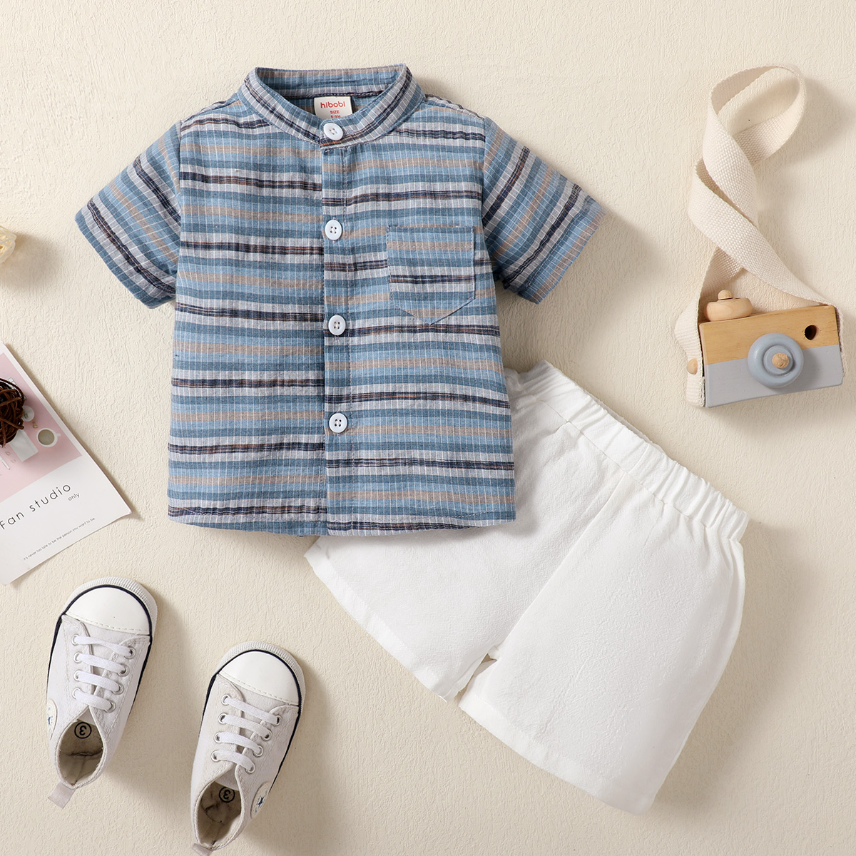 hibobi Boy Baby Stand Collar Short Sleeve Stripes Print Suit Wholesale