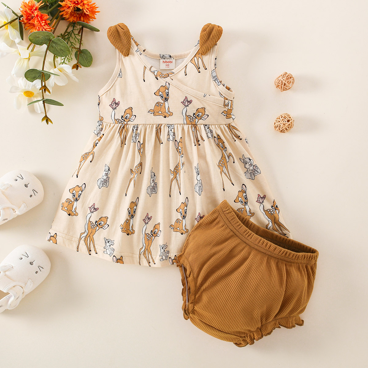 hibobi Girl Baby Deer Floral Dress Set Wholesale