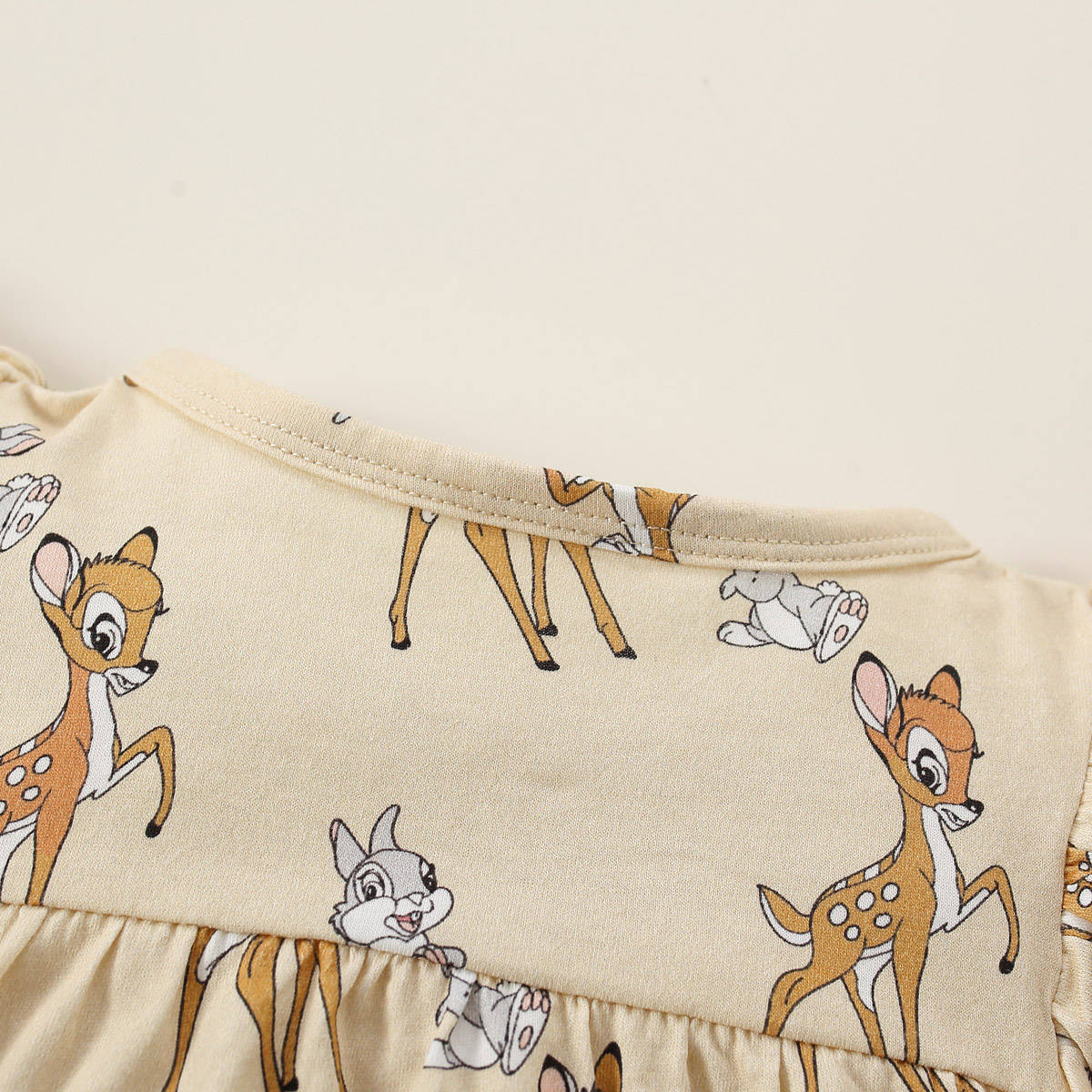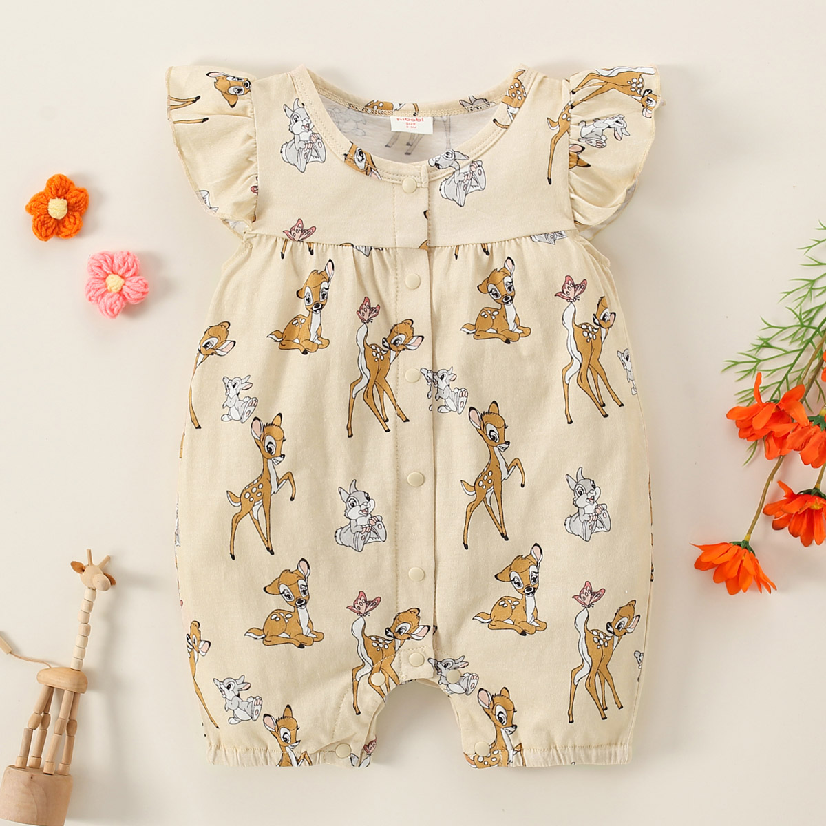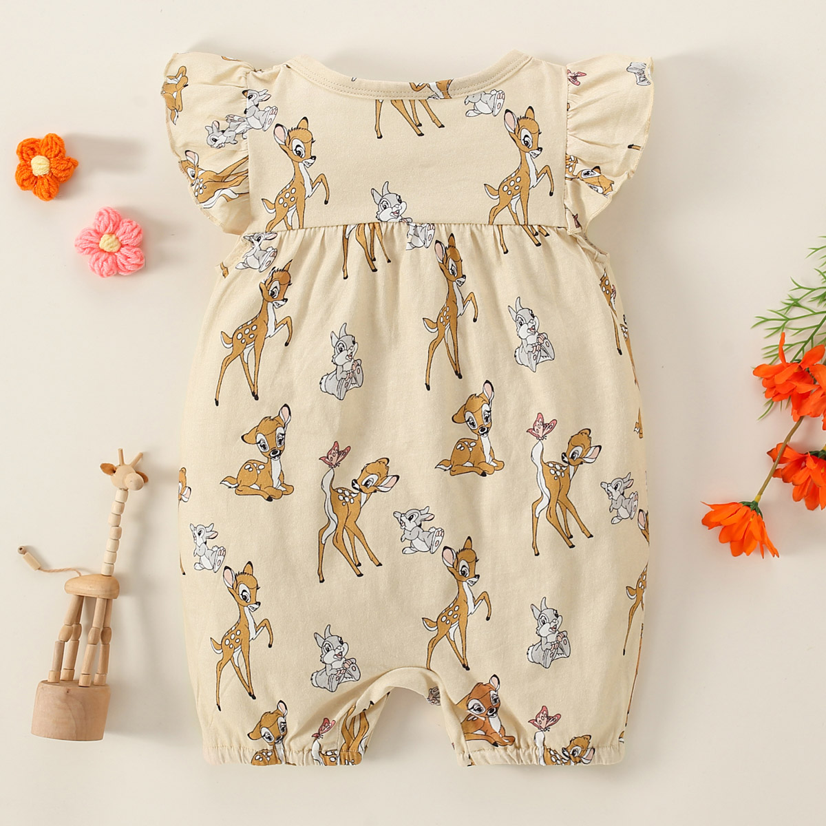 hibobi Girl Baby Fawn Print Fly-sleeve Bodysuits Wholesale