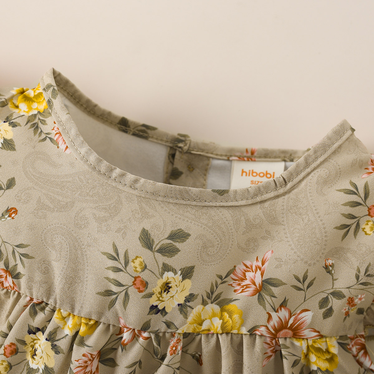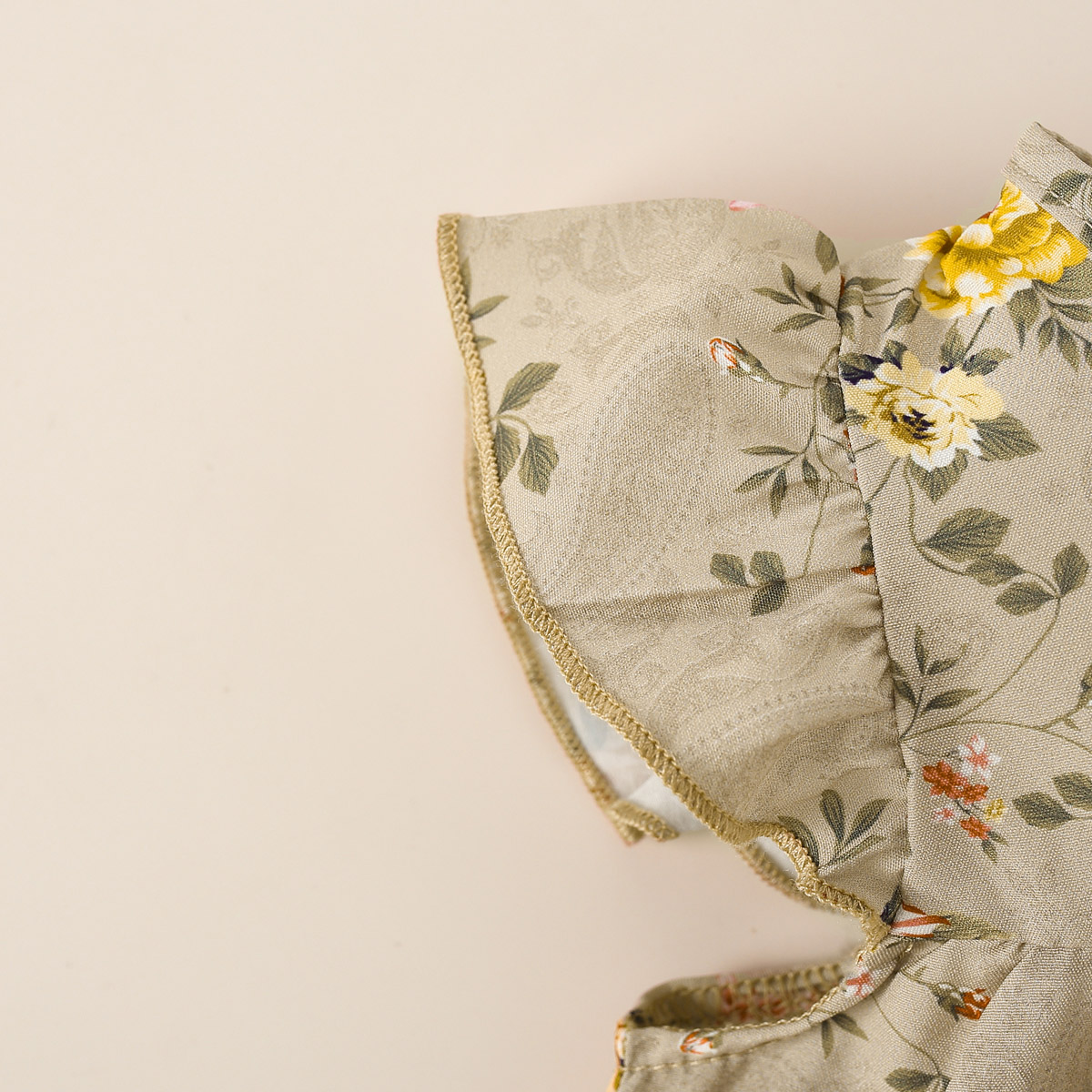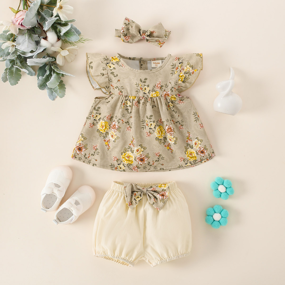 hibobi Girl Baby Floral Print Bow Fly Sleeve Set & Headband Wholesale