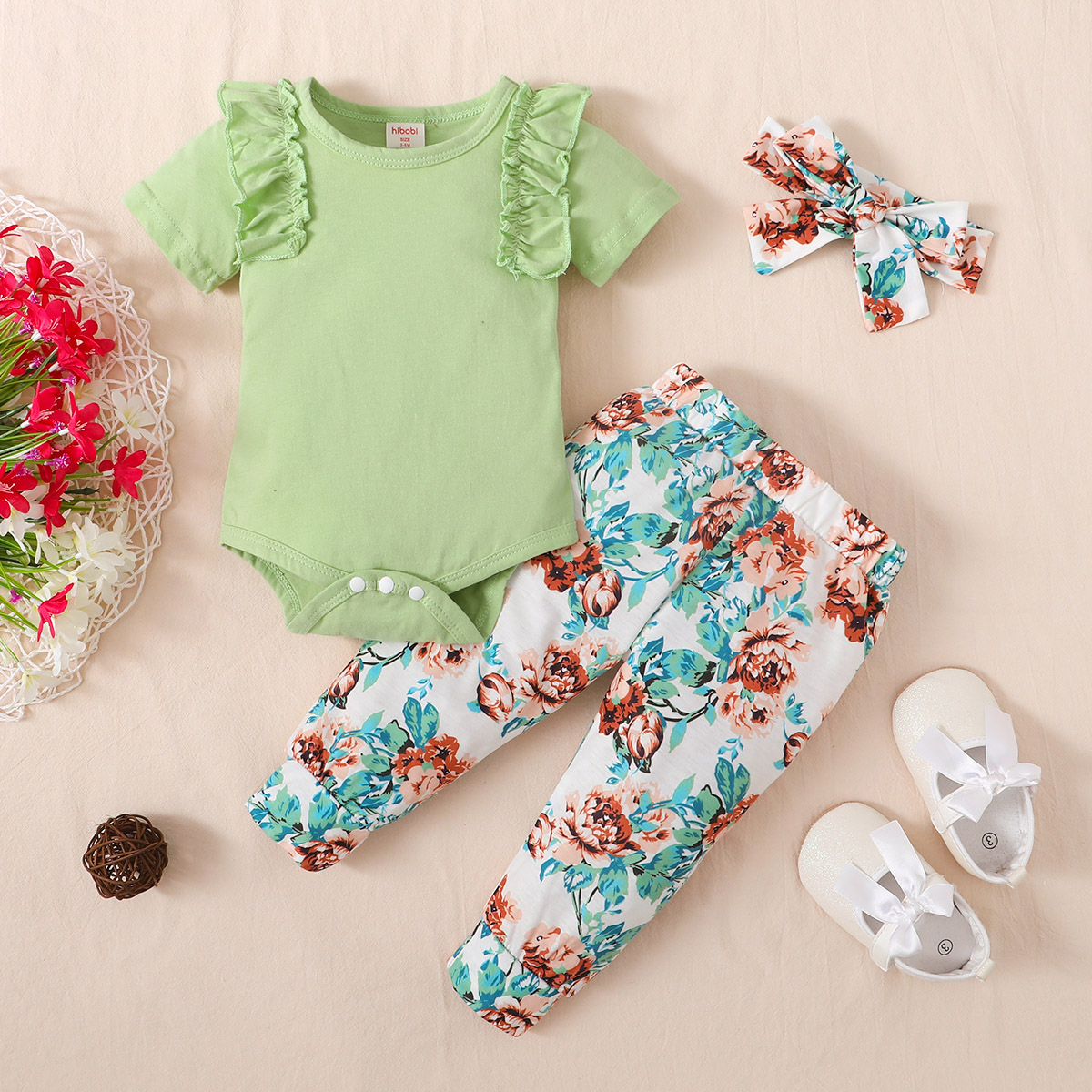 hibobi Girl Baby Green Floral Print Trouser Suit Wholesale