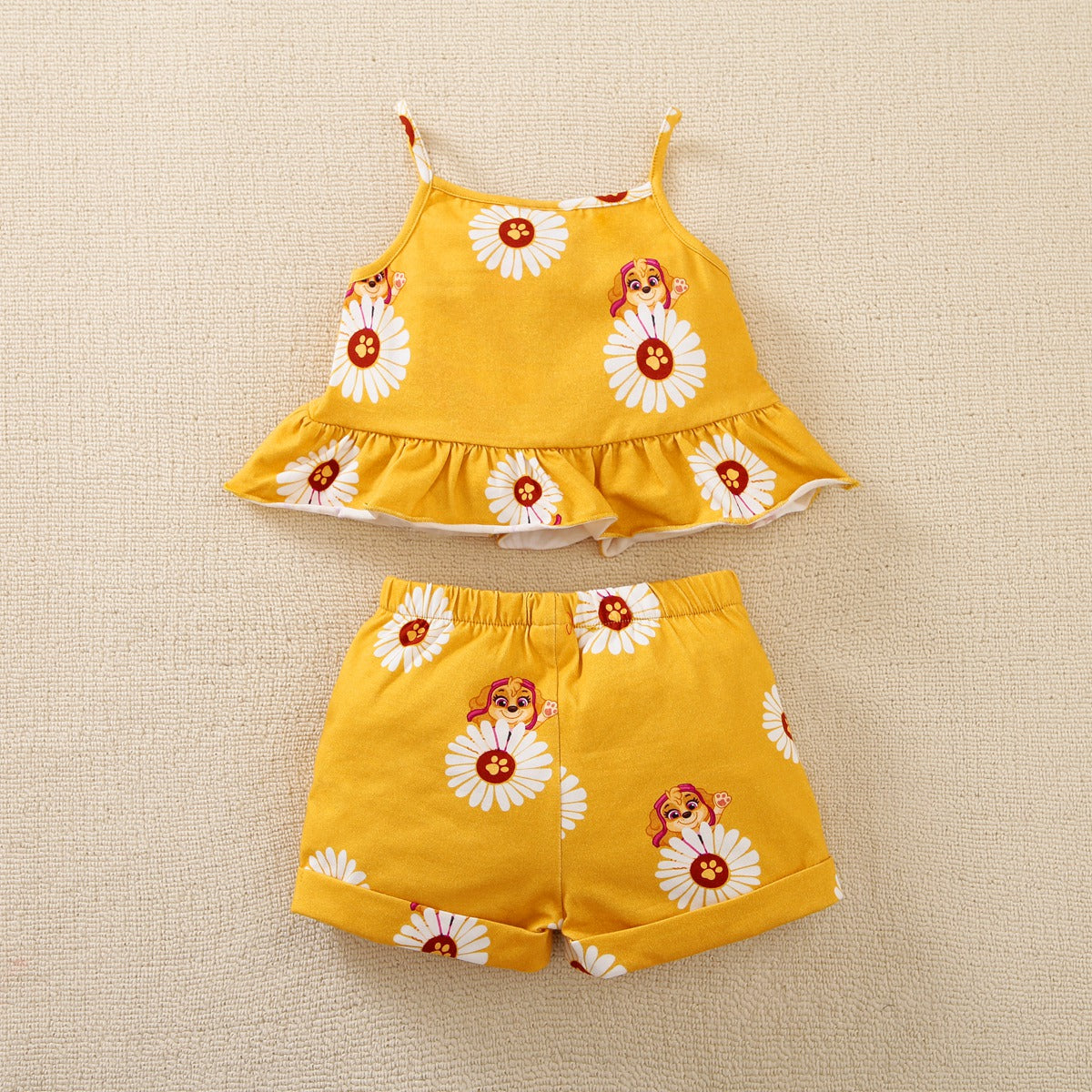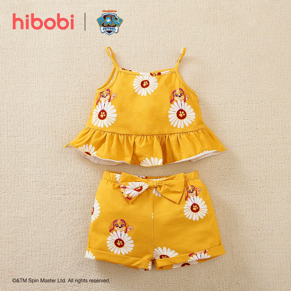 hibobi×PAW Patrol Baby Girl Cartoon Print Ruffle Cotton T-shirt and Pants Set Wholesale