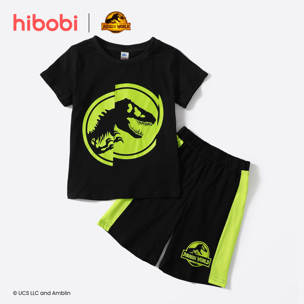 Jurassic World × kid boy Dinosaur Print Patchwork Shorts Suit Wholesale